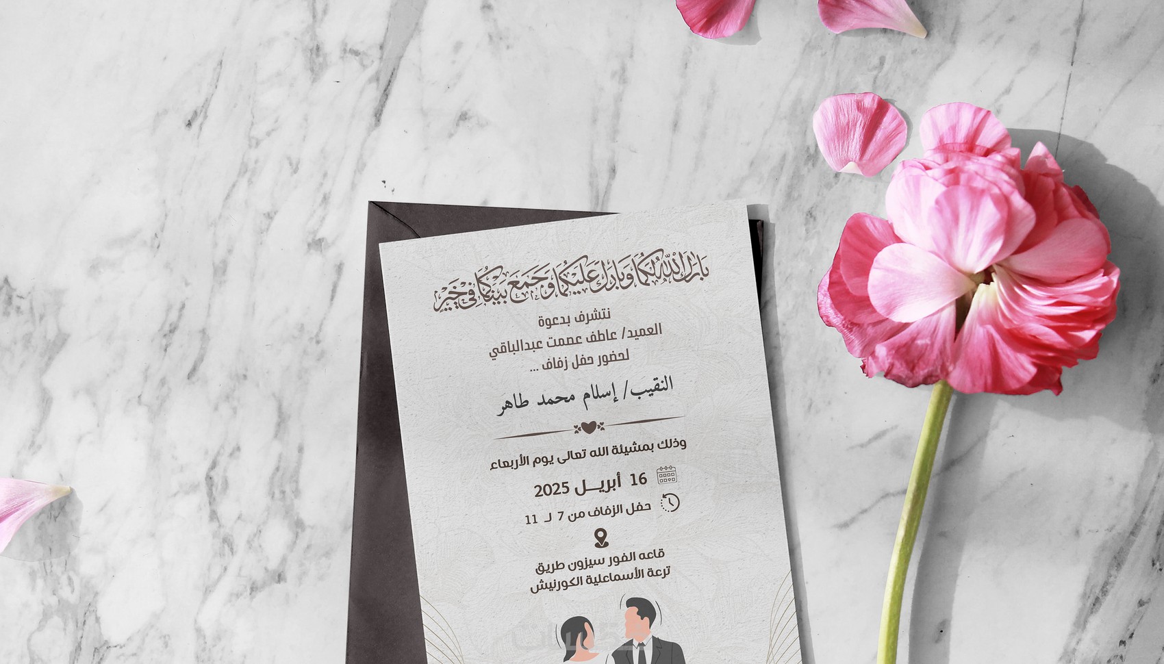 تصميم دعوة زفاف وبطاقات تهنئة باحترافية ودقة عالية