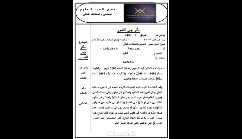 صياغة الإنذارات القانونية الاحترافية بجميع أنواعها