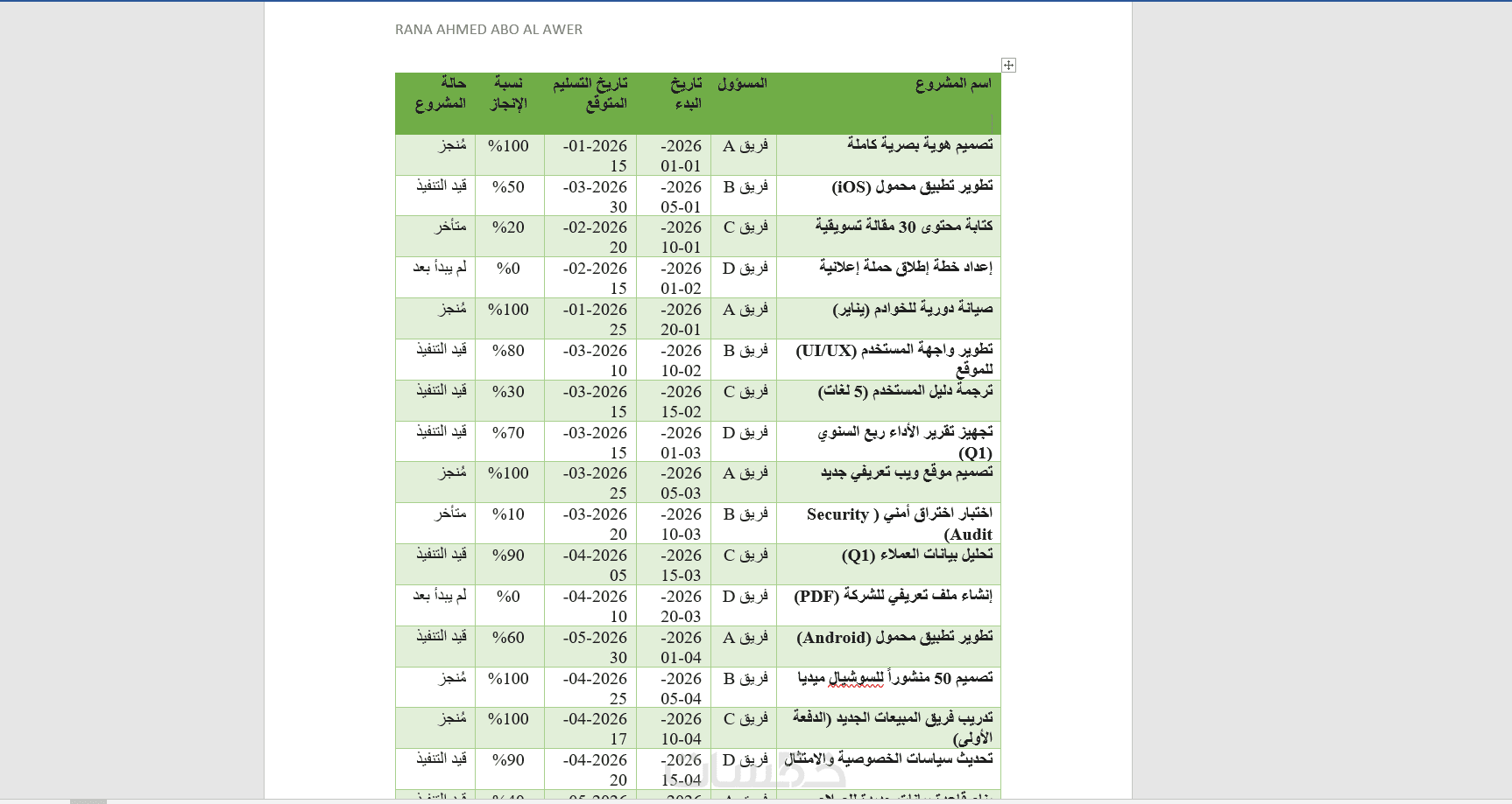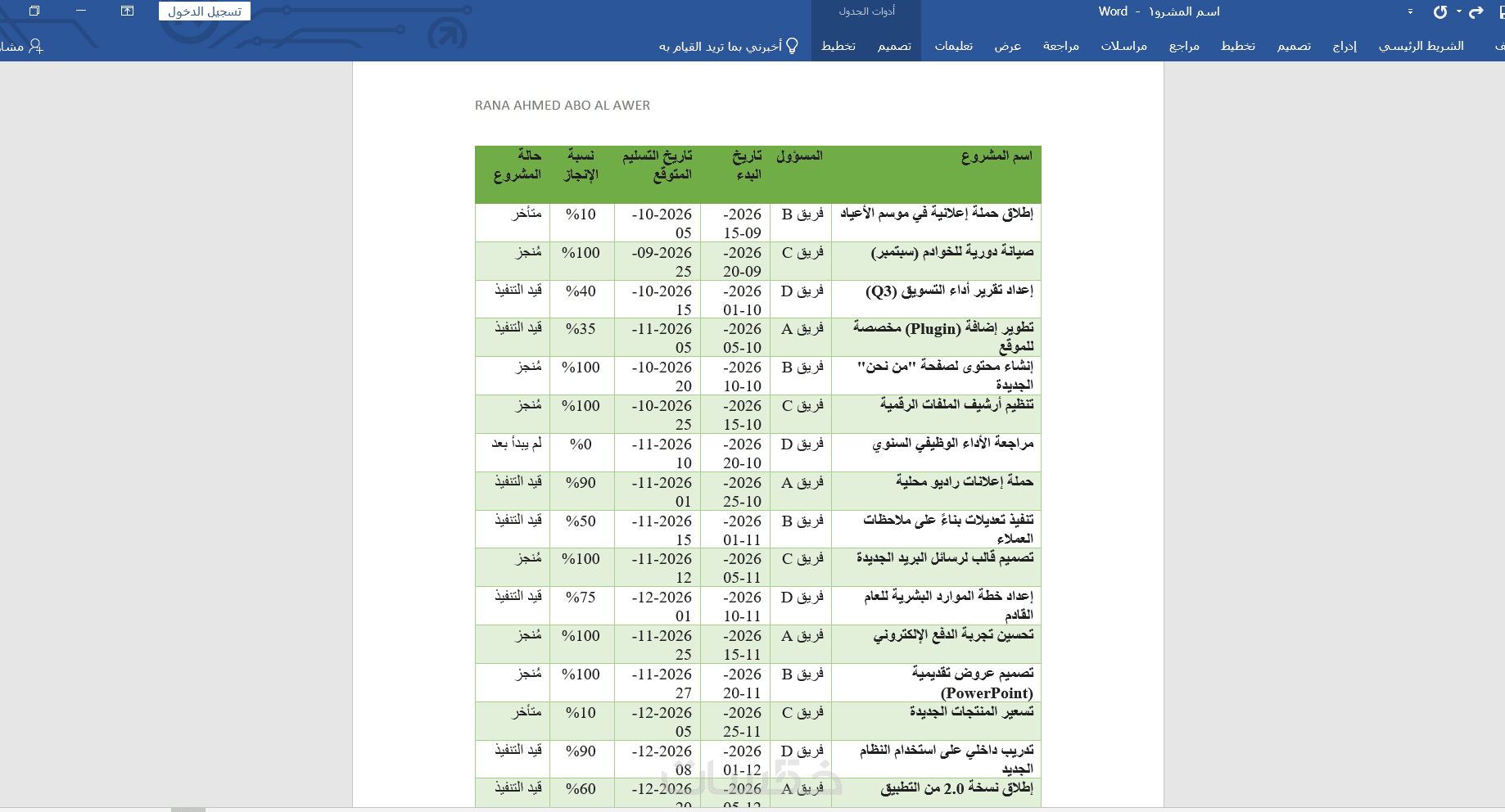 خدمة تصميم جداول Word باحترافية عالية