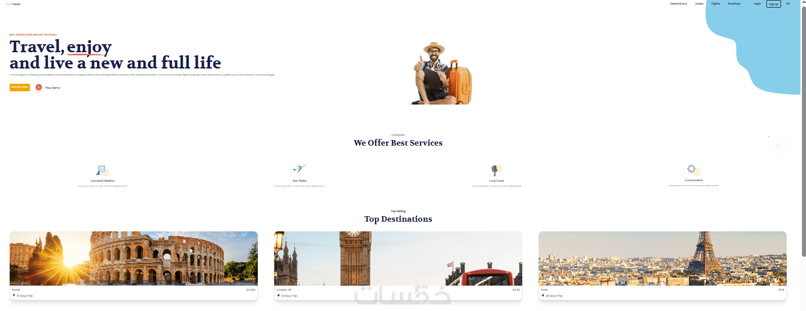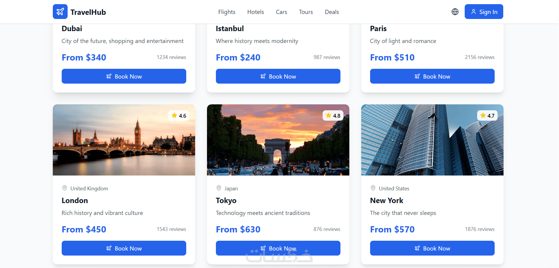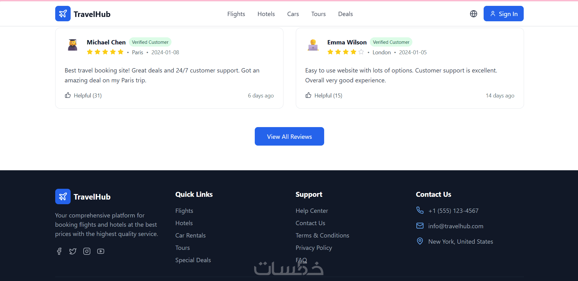 تصميم وتطوير موقع حجوزات رحلات سياحية احترافي React.js