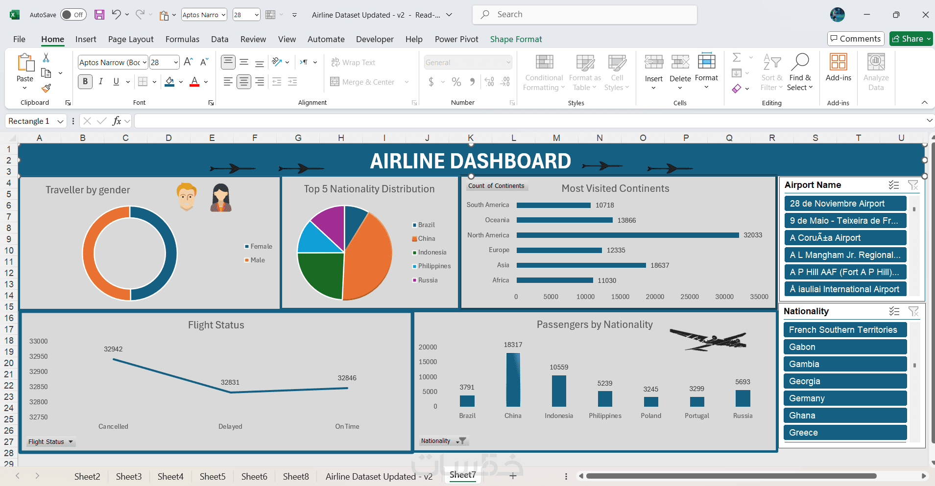 تقرير Excel احترافي يتضمن تحليل شامل ولوحة تفاعلية ديناميكية