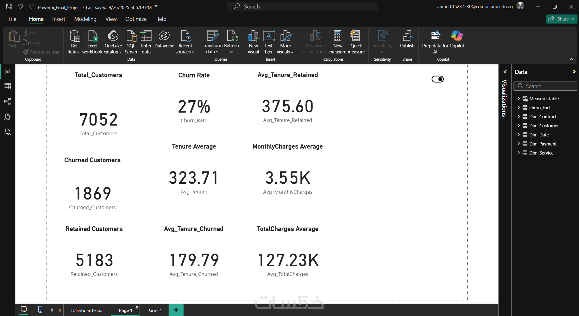 داش بورد بور بي اي تحليل معدل دوران العملاء