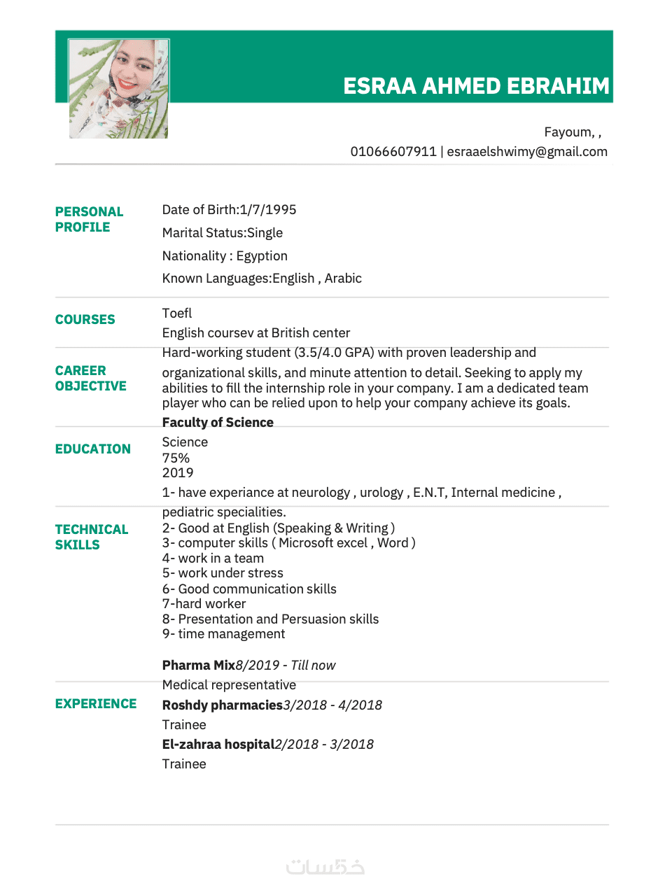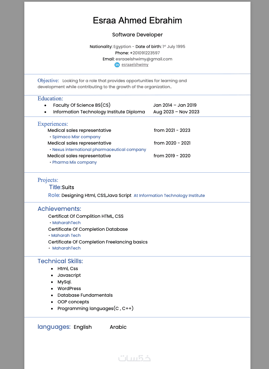 كتابة سيرة ذاتية رسمية باللغتان العربية والانجليزية