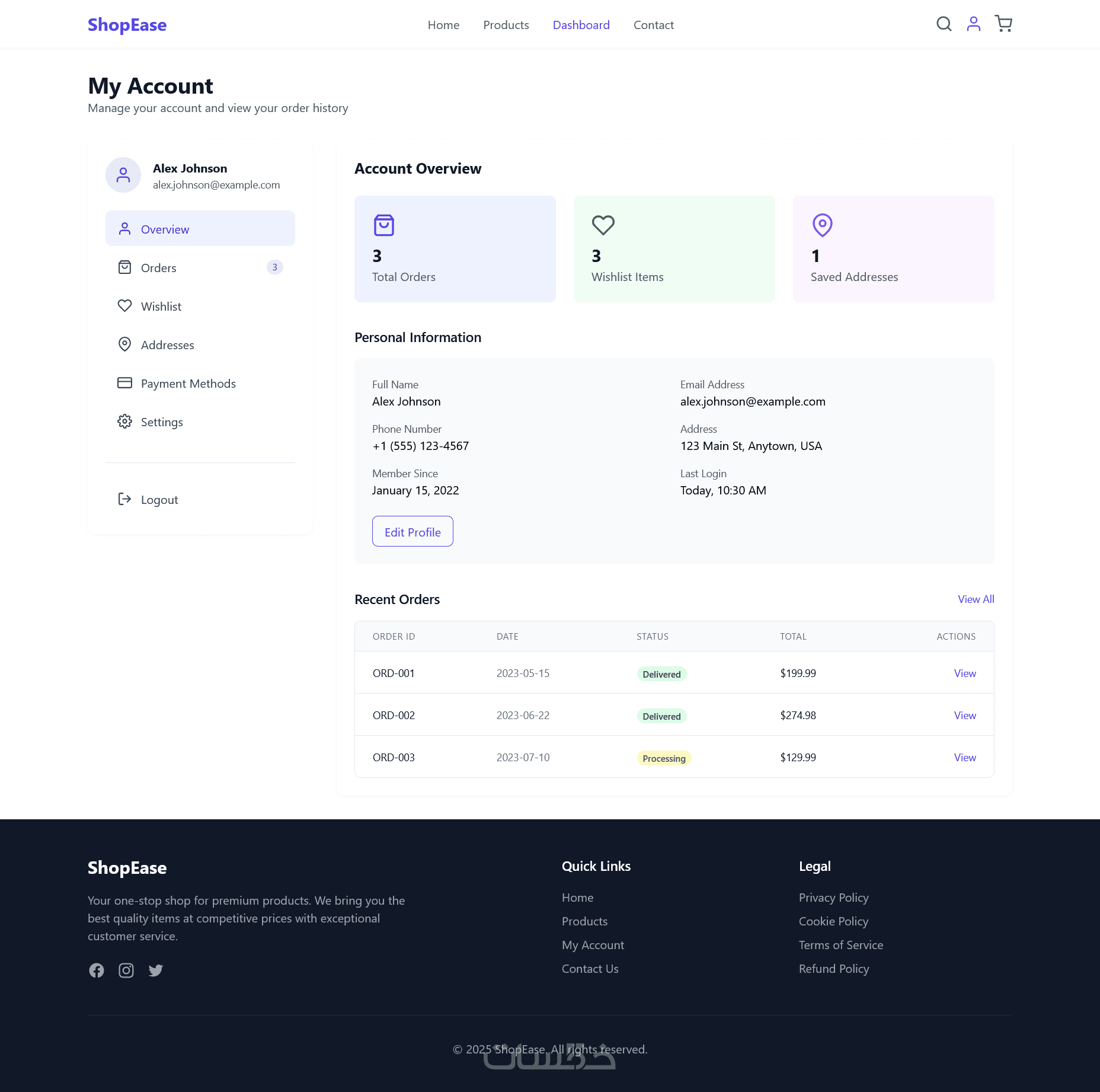 تصميم وتطوير موقع E-commerce احترافي باستخدام React وTailwin