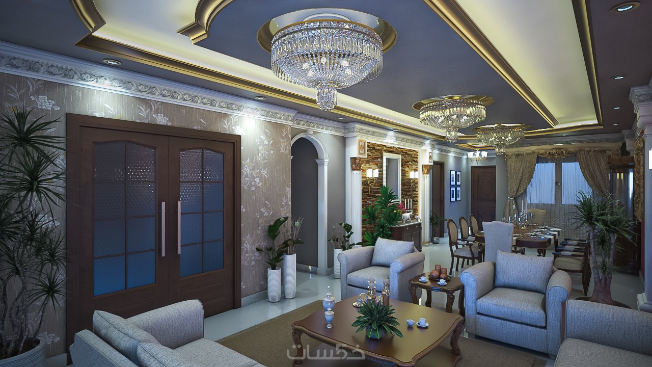 تصميم داخلي احترافي ورندرات واقعية لمساحة سكنية