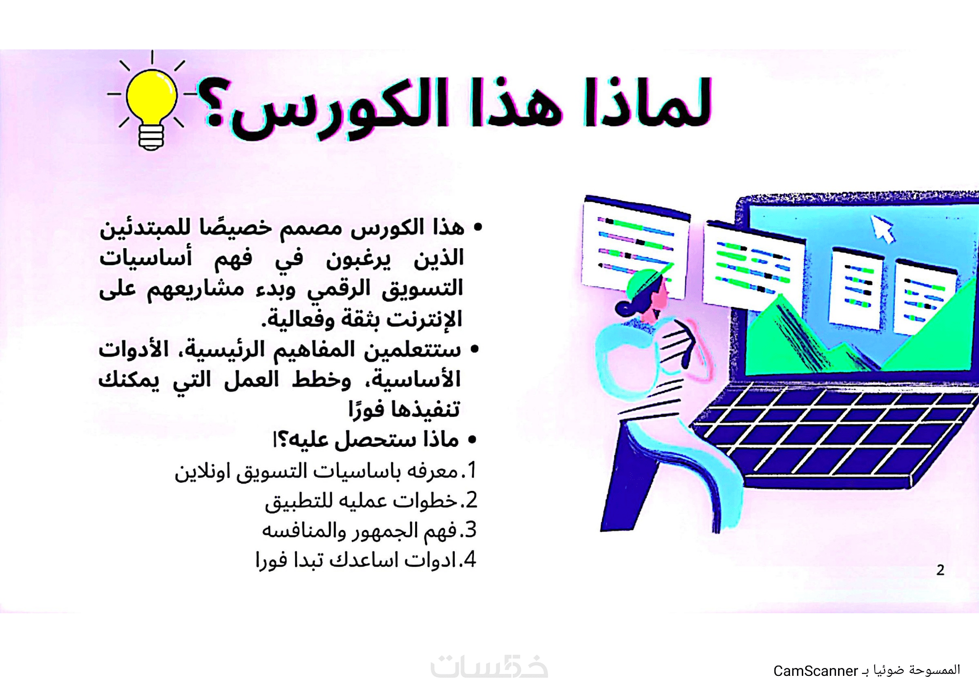 كورس التسويق الرقمي للمبتدئين مع ملفات PDF وعرض بوربوينت