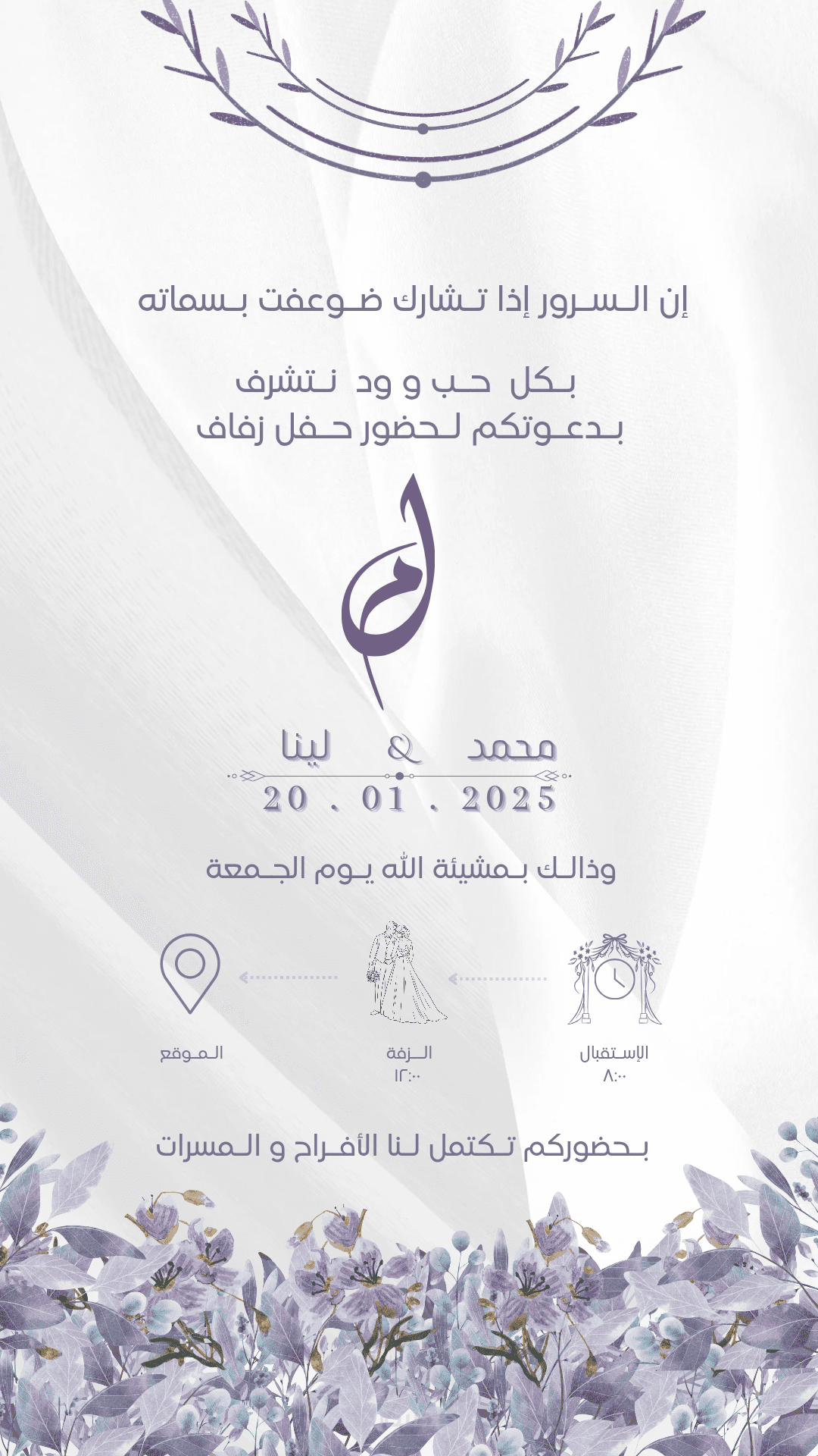تصميم دعوة زفاف إلكترونية احترافية باسم العروسين