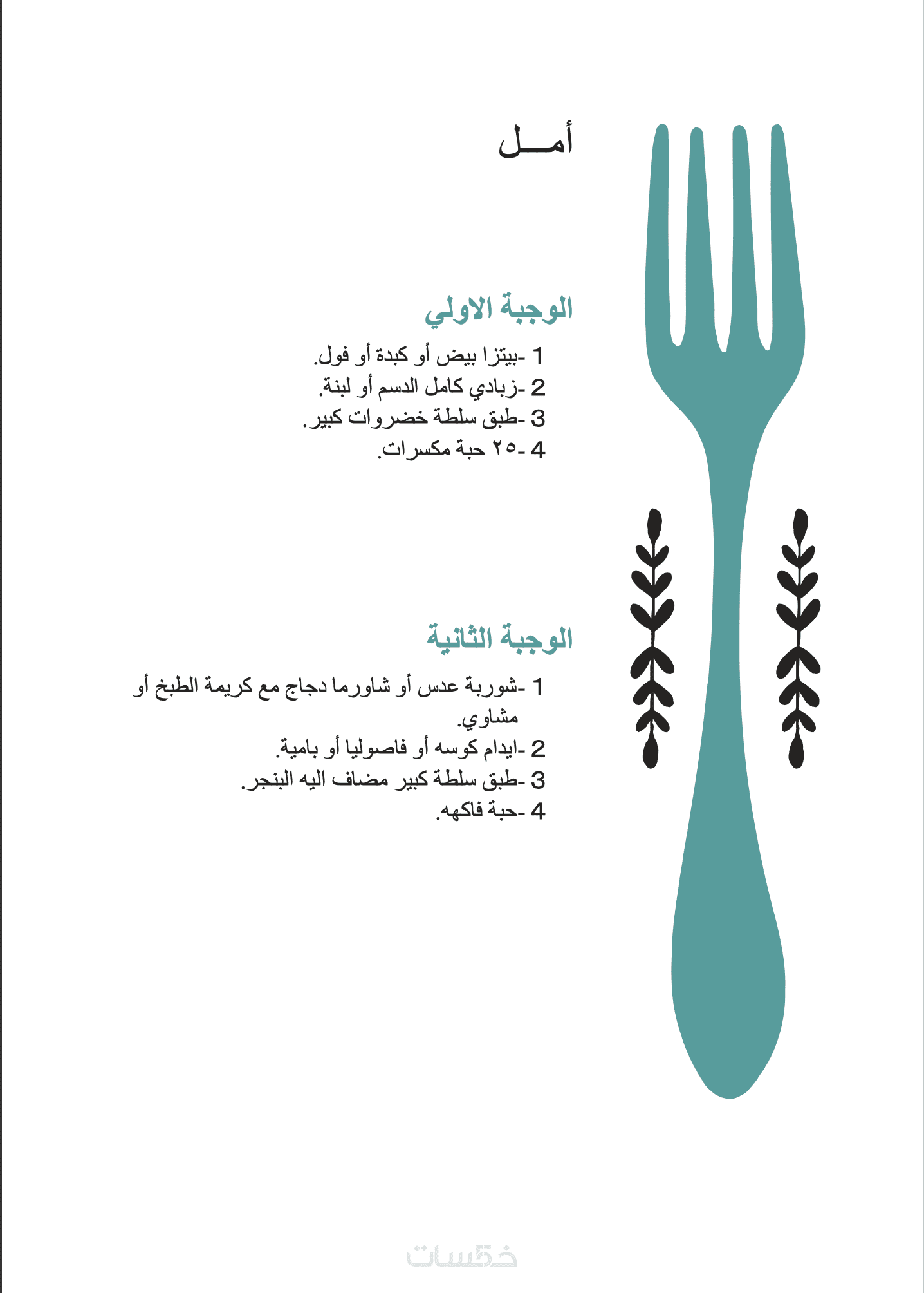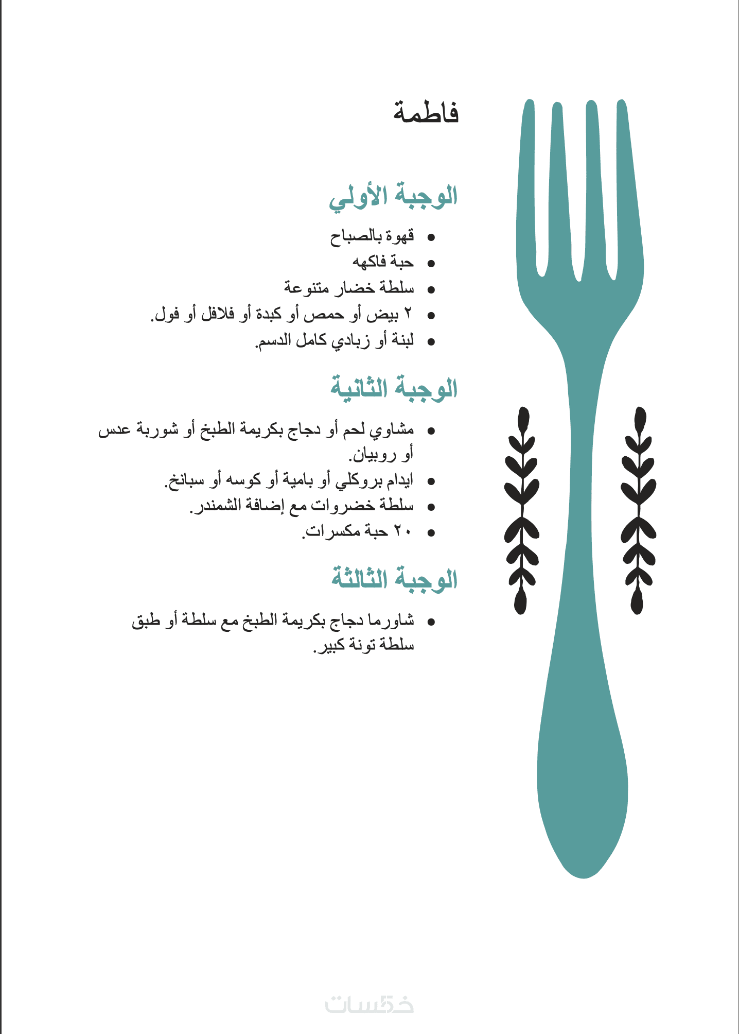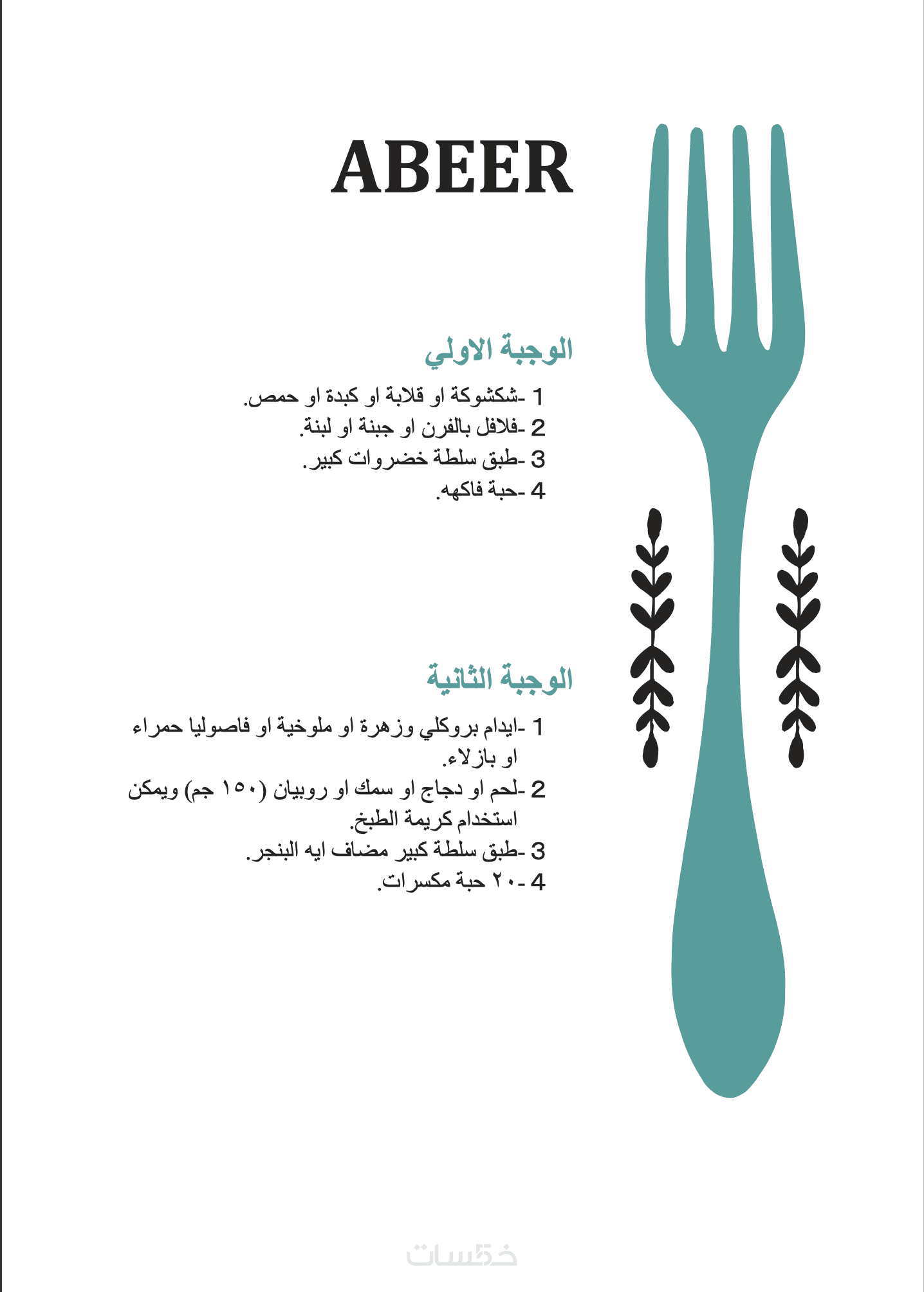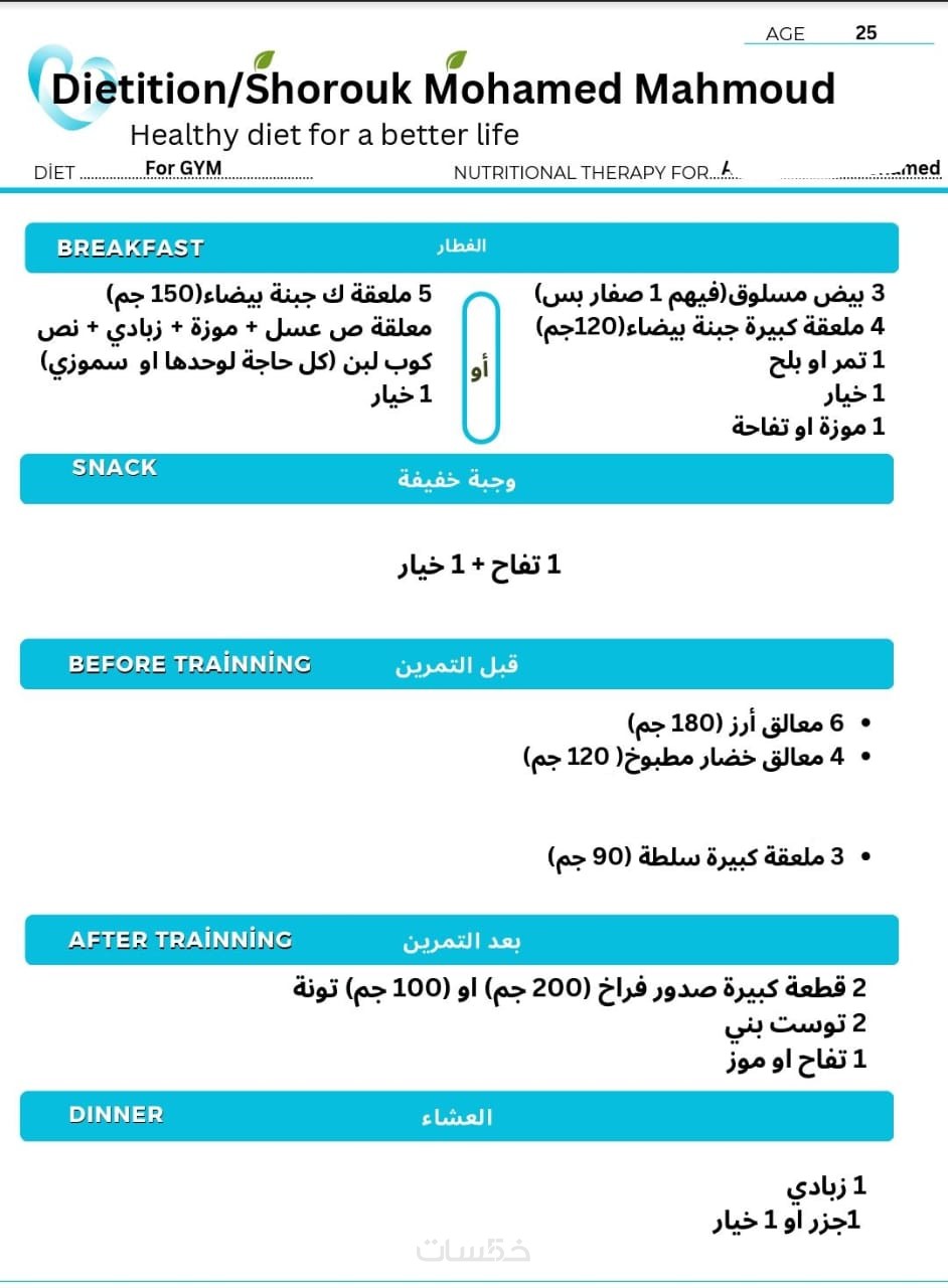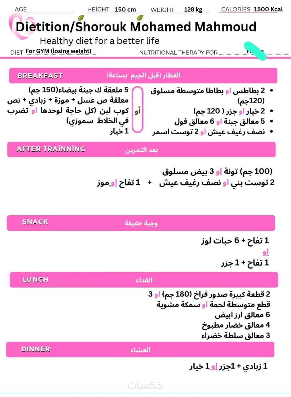 خطة عذائية مخصصة اسبوعيا لمدة شهرومتابعه