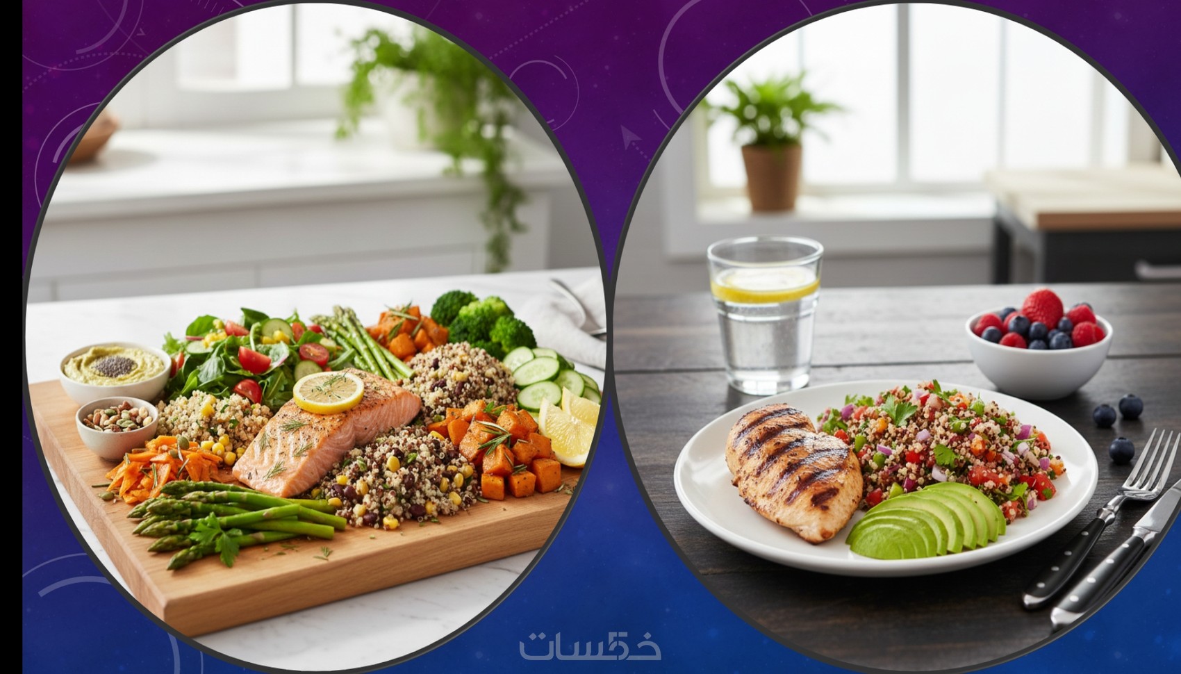 خطة تغذية ودايت مخصصة لهدفك — خسارة وزن، بناء عضل