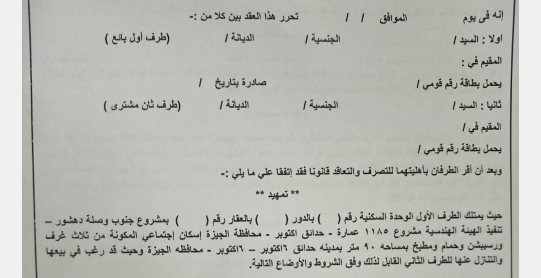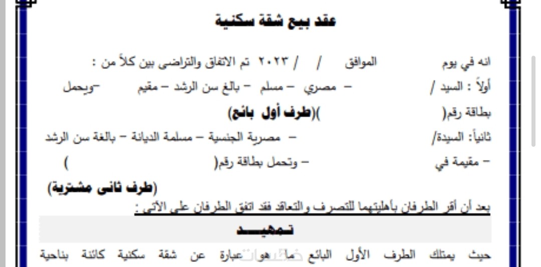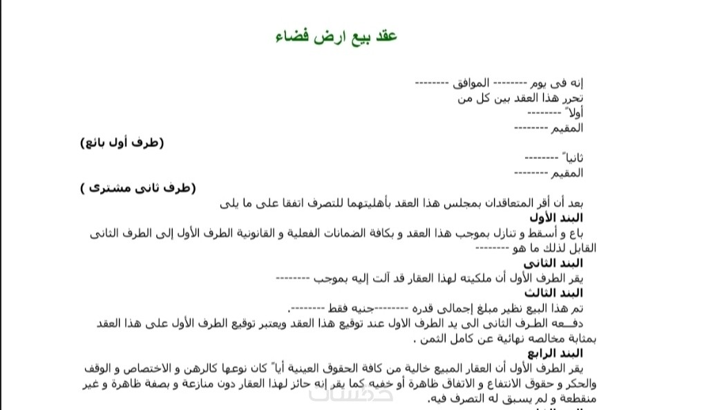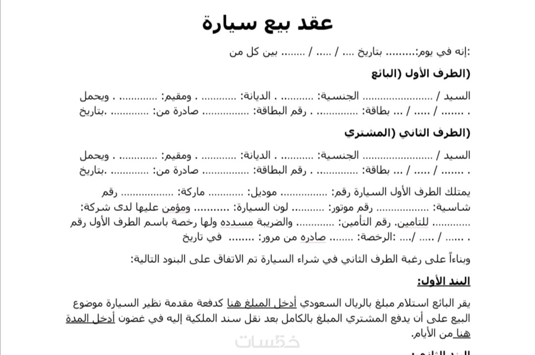 عقد بيع كامل البنود متوافق مع الانظمة العربية و القانونية