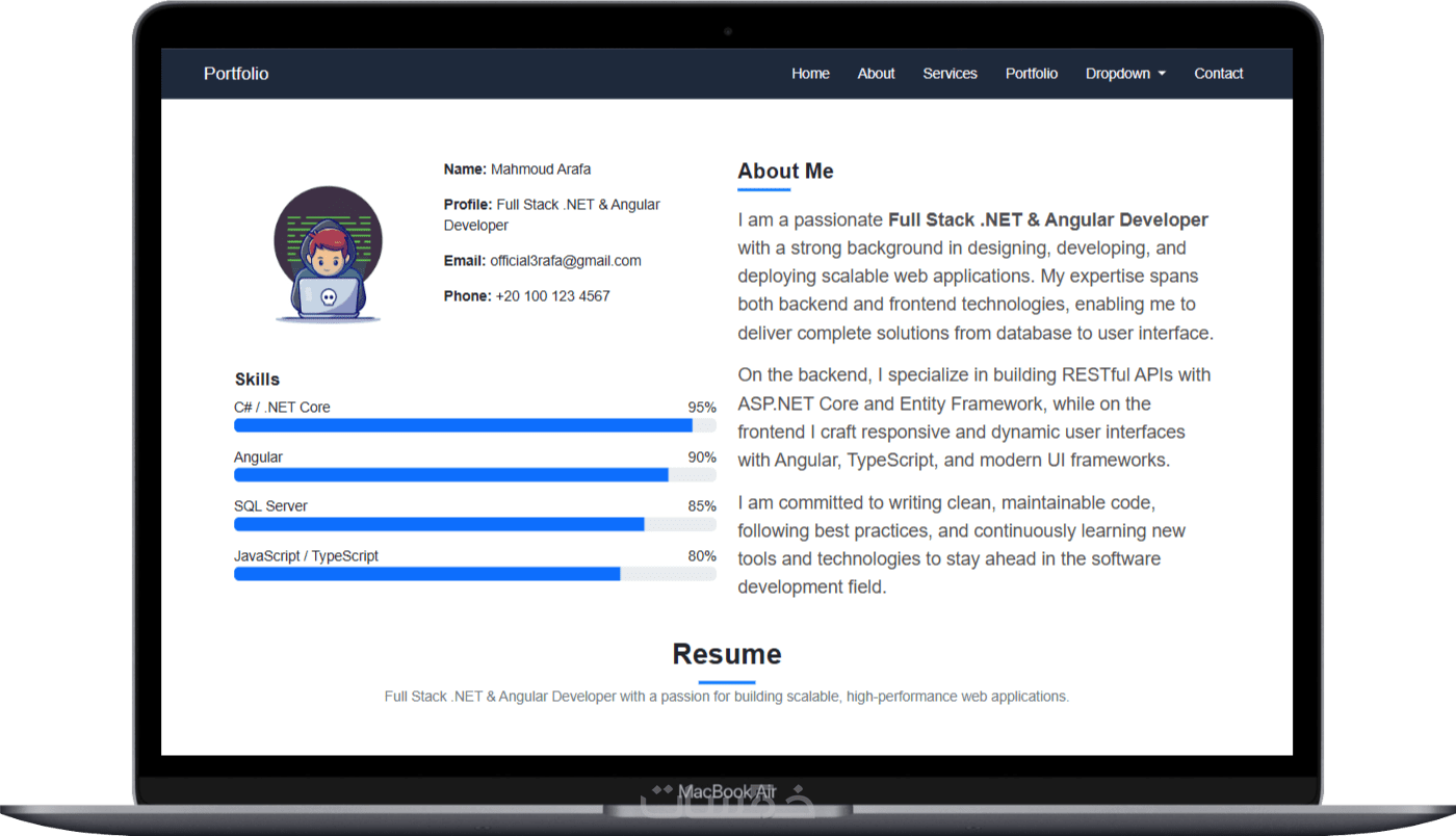 تصميم وبرمجة موقع CV Portfolio احترافي لعرض سيرتك ومهاراتك
