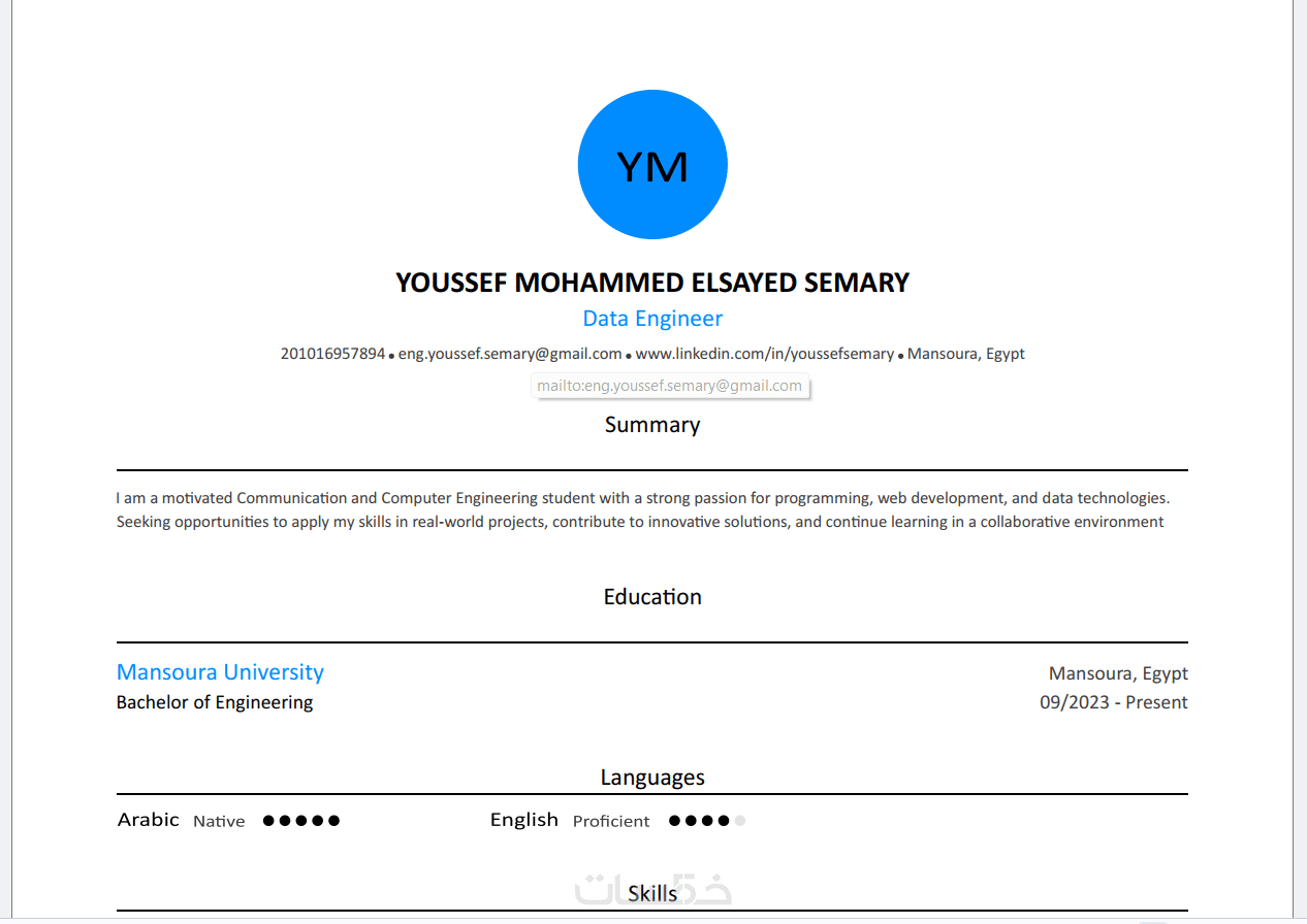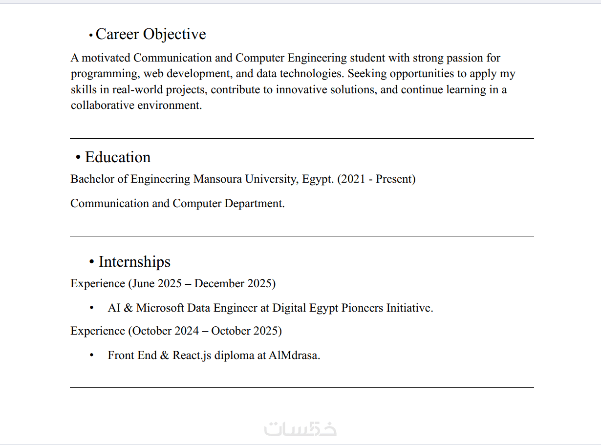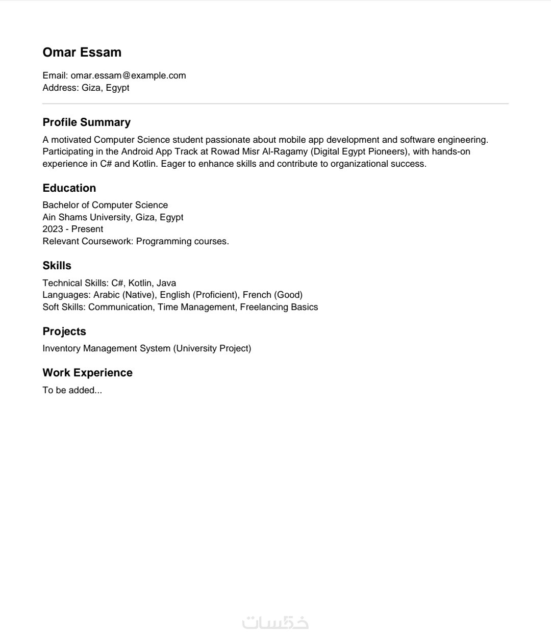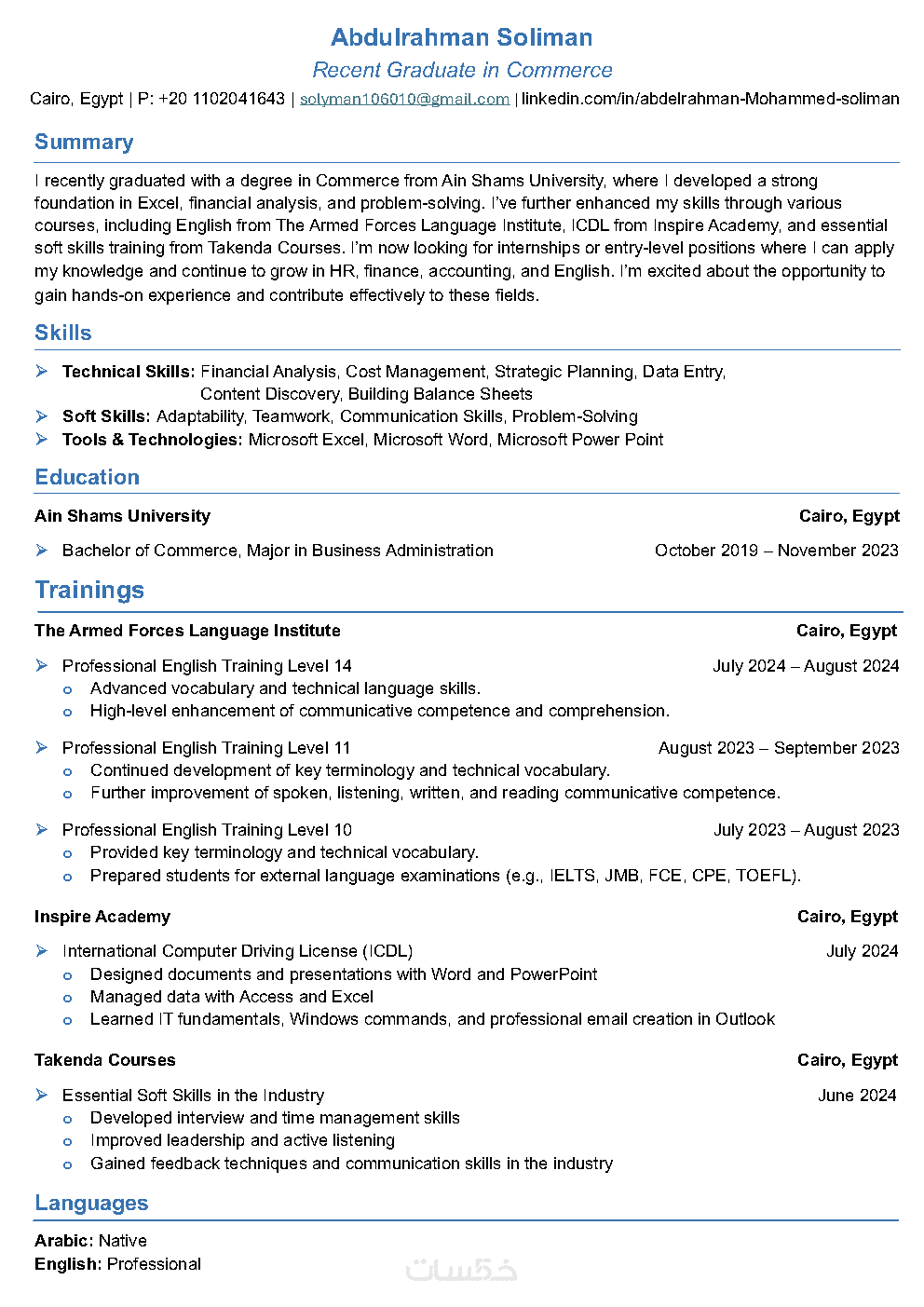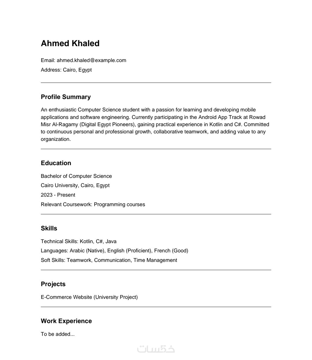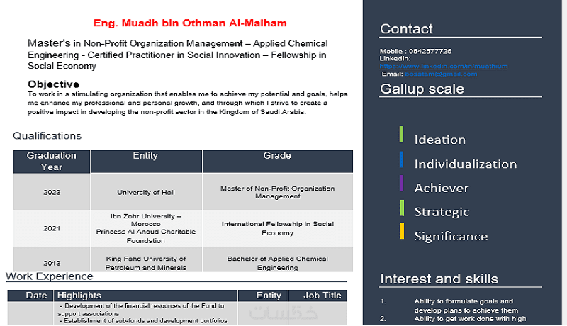 كتابة سيرتك الذاتية بإحدى اللغتين العربية والإنجليزية