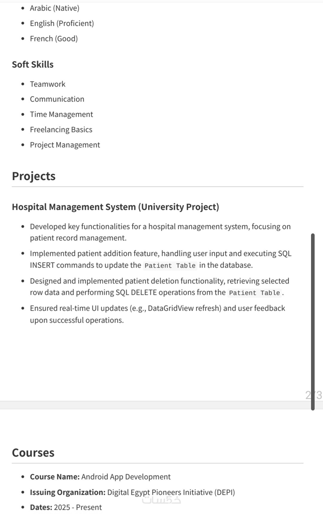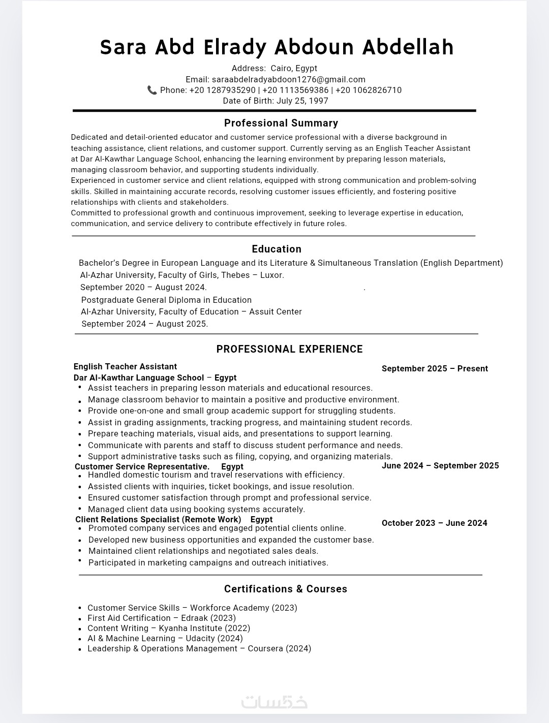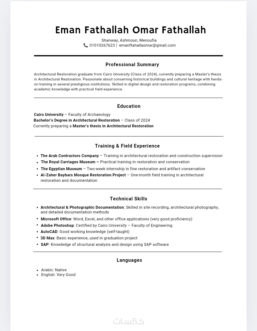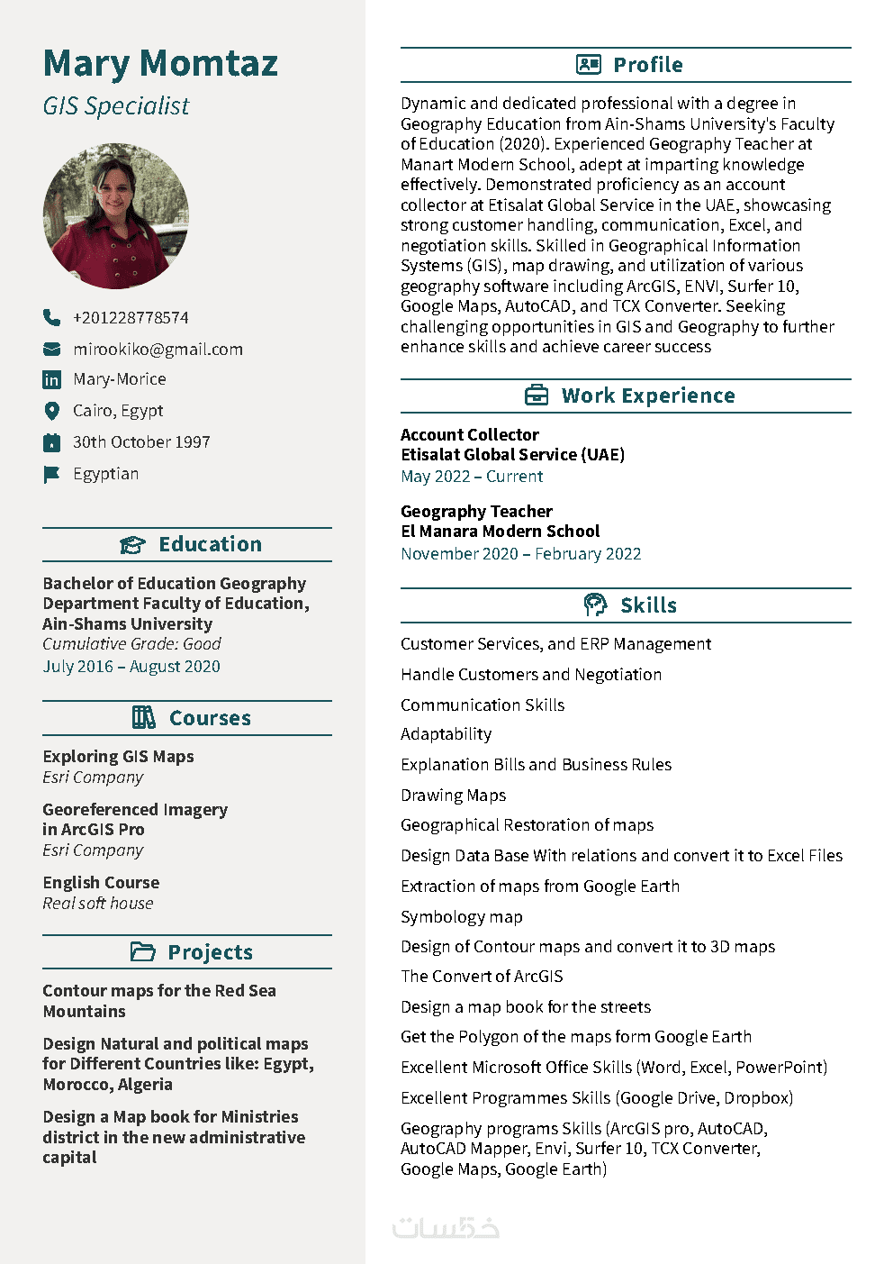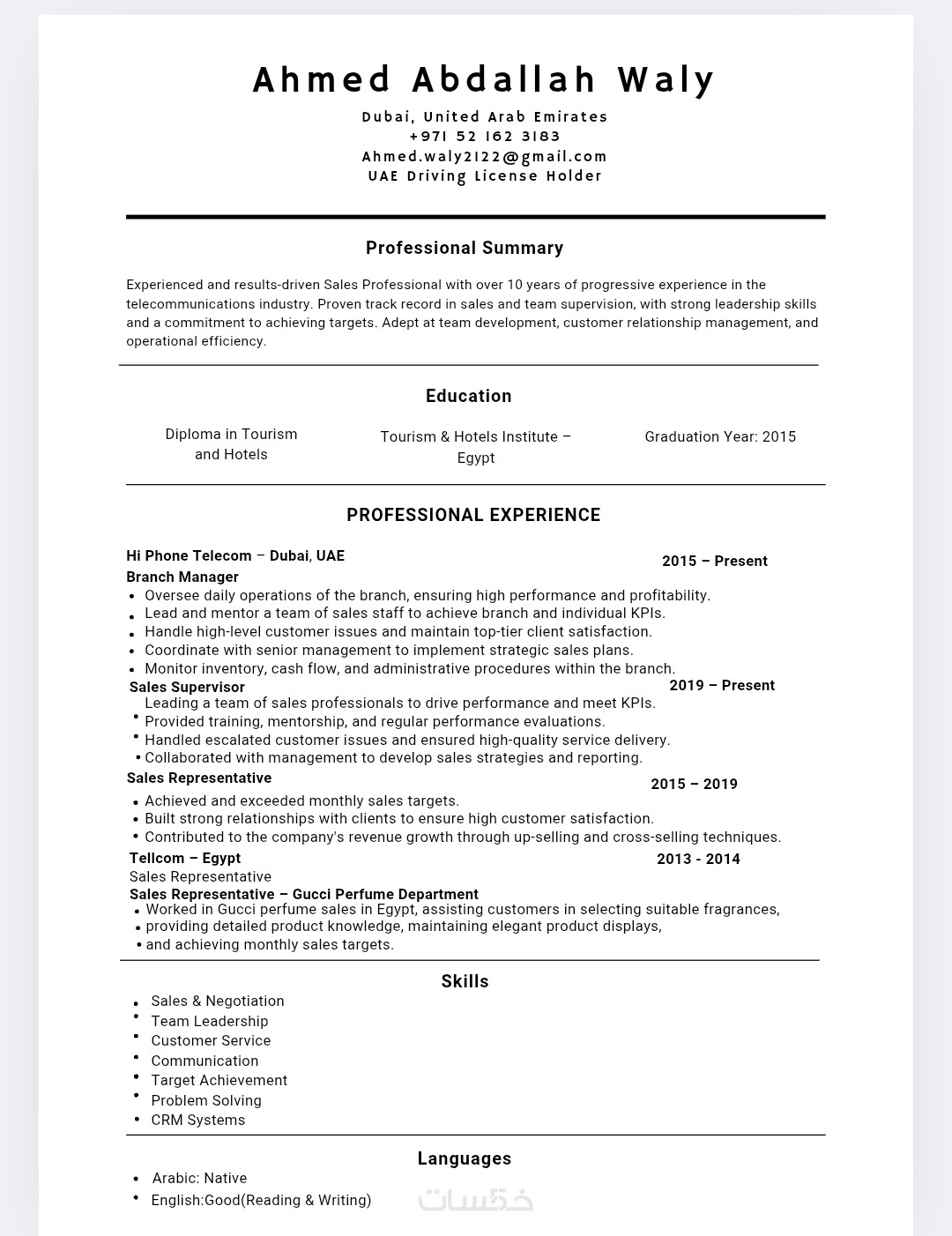 كتابة سيرتك الذاتية بإحدى اللغتين العربية والإنجليزية