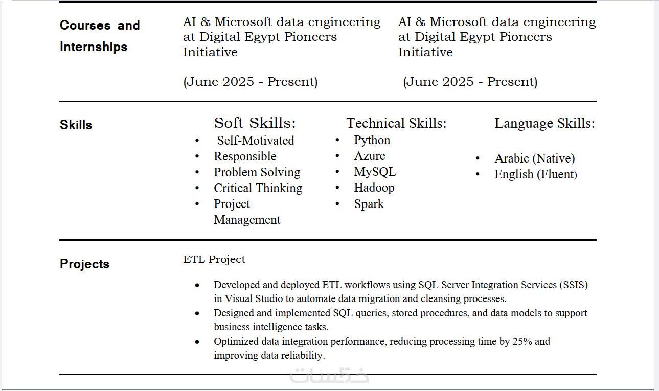 تصميم سيره ذاتيه احترافيه بنظام ATS