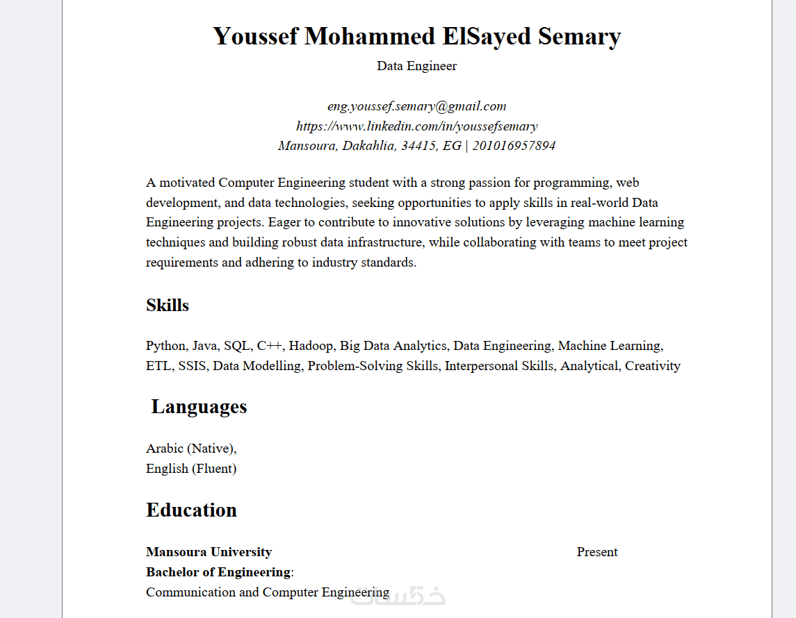انشاء سيره ذاتيه متوافقه مع نظام ATS
