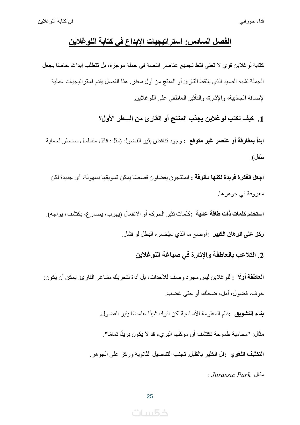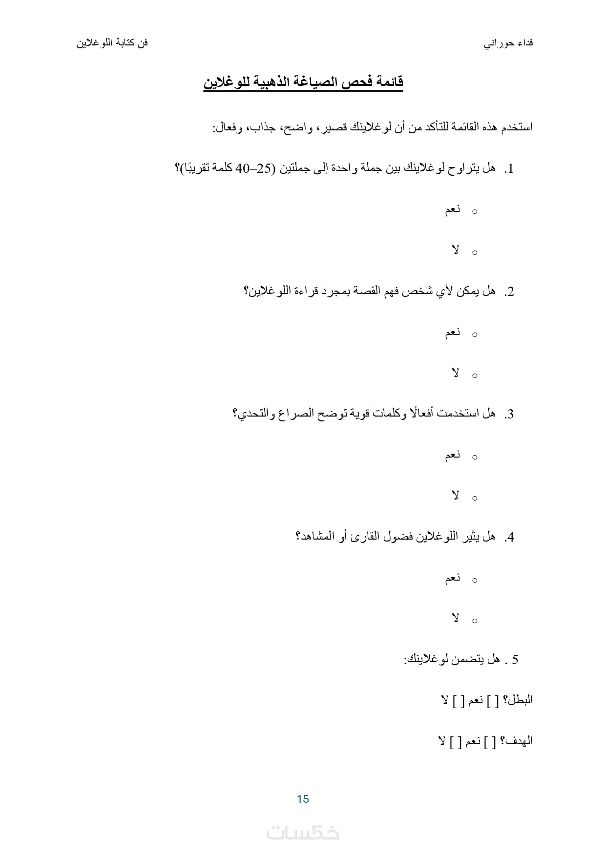 كتيب فن كتابة اللوغلاين لمساعدتك في بناء وتسويق السيناريو