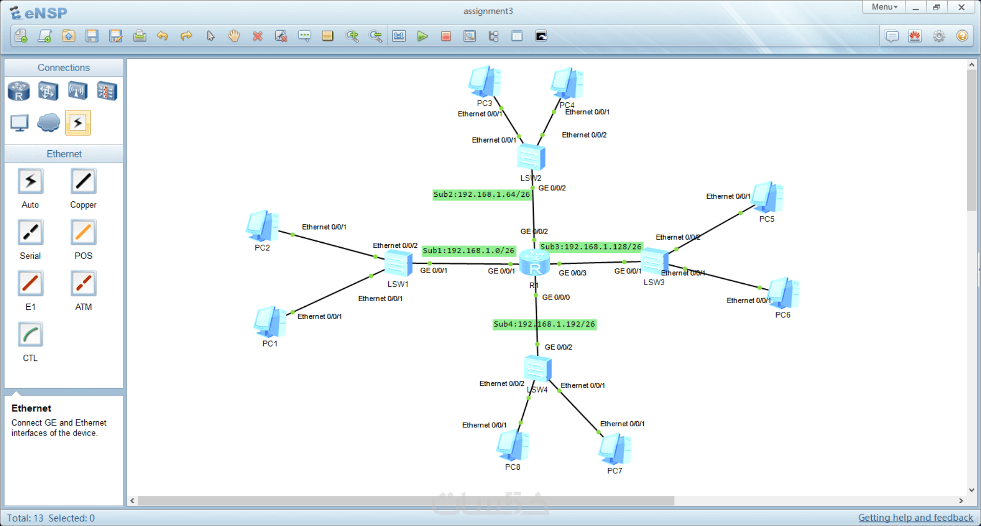 تصميم جميع الشبكات باستخدام packet tracer و GNS3