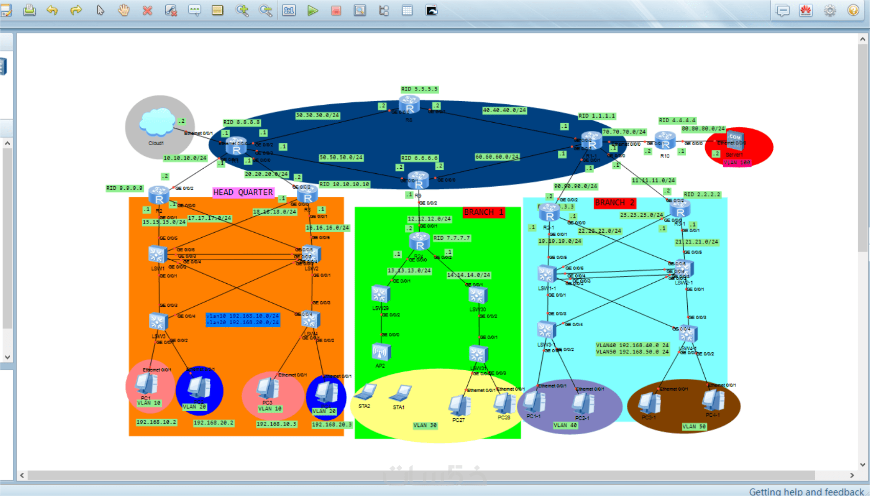 تصميم وتأسيس شبكة شركات احترافية على eNSP