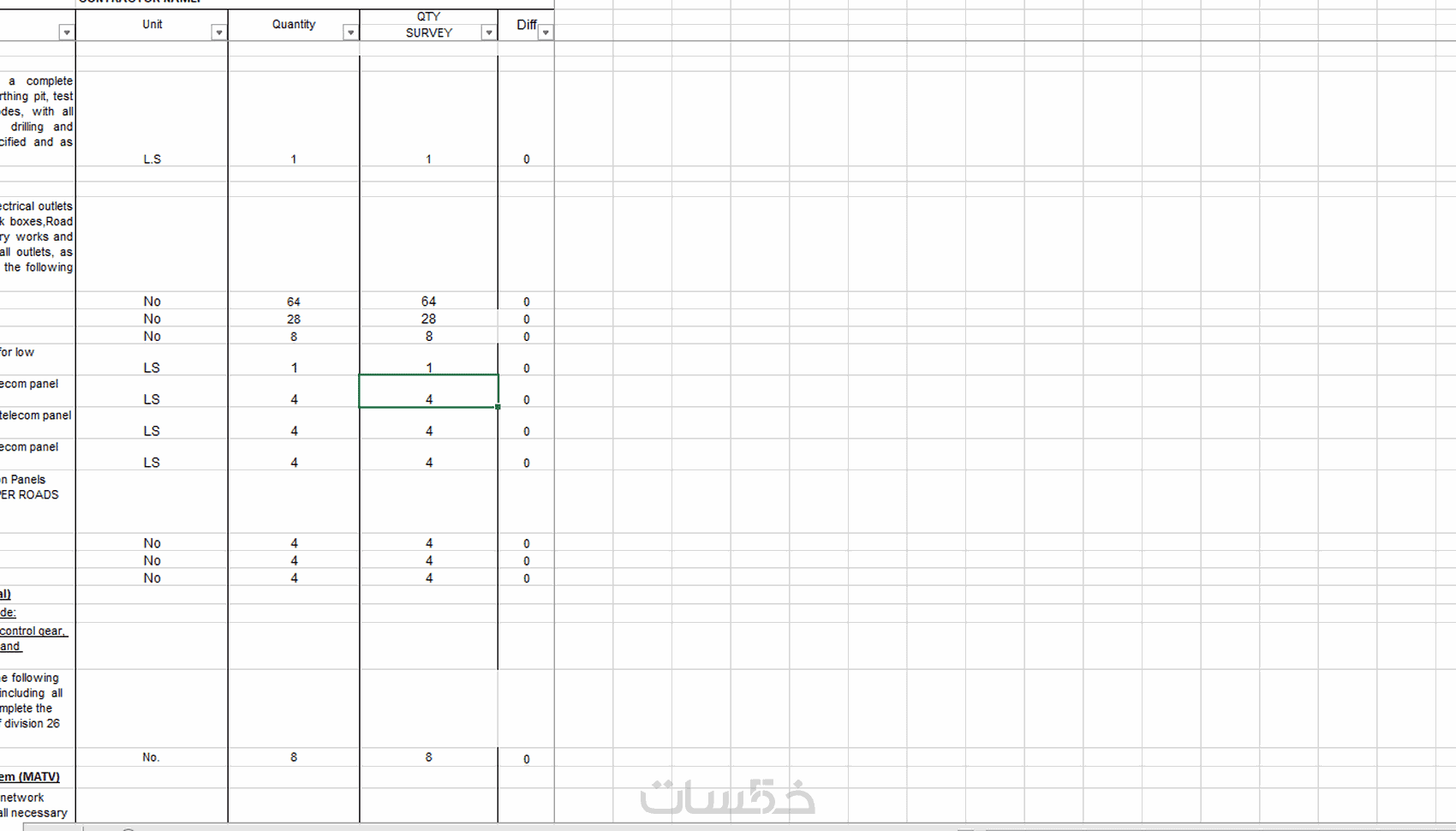 إعداد BOQ كامل لأعمال الكهرباء – توزيع – إنارة – لوحات