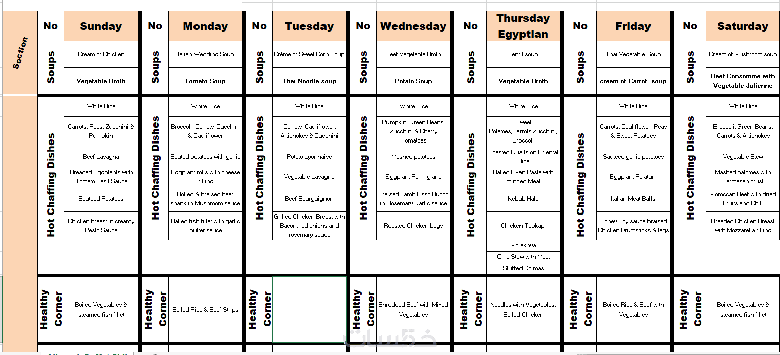 القوائم التشغيلية القياسية لكافيه أو مطعم