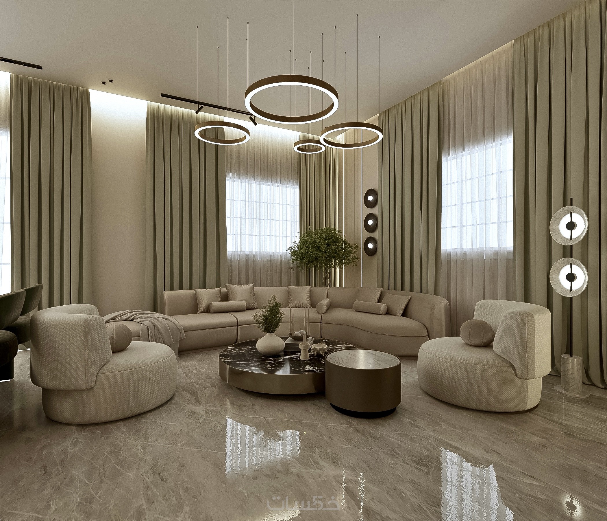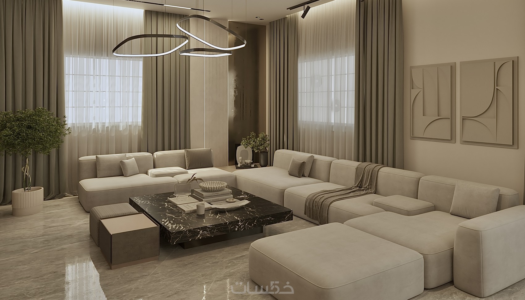 تصميم داخلى سكني راقٍ (فيلا، شقة، مشروع) بأسلوب احترافي