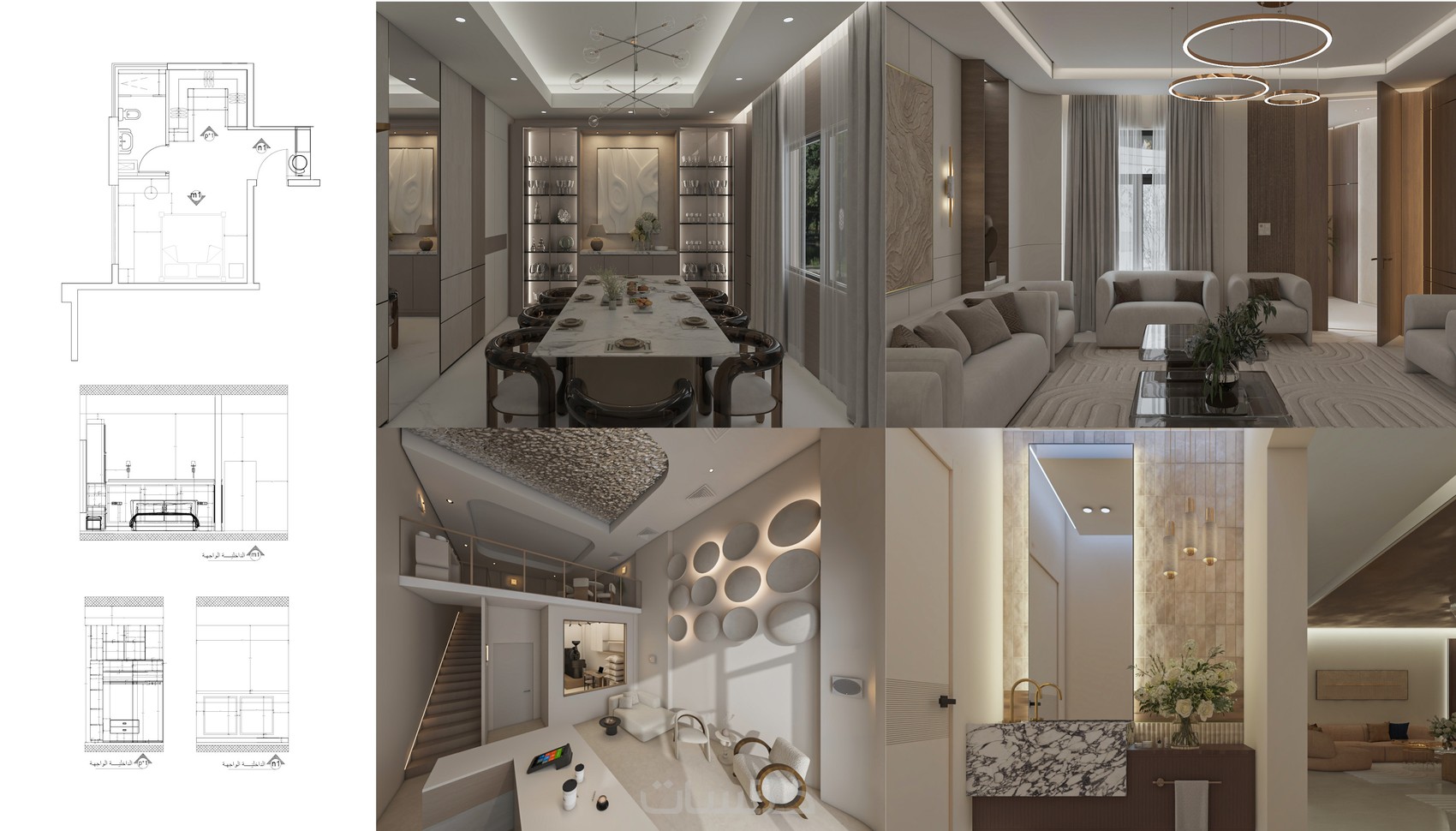 تصميم داخلي عصري و فخم 3D شقق فلل مكاتب محلات