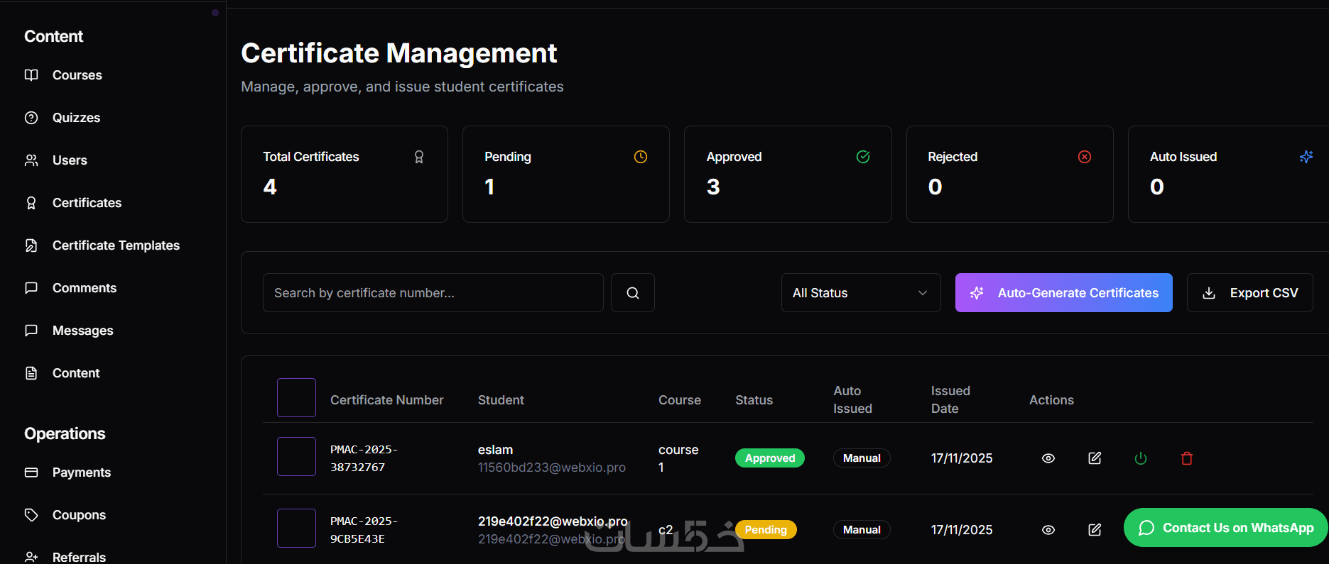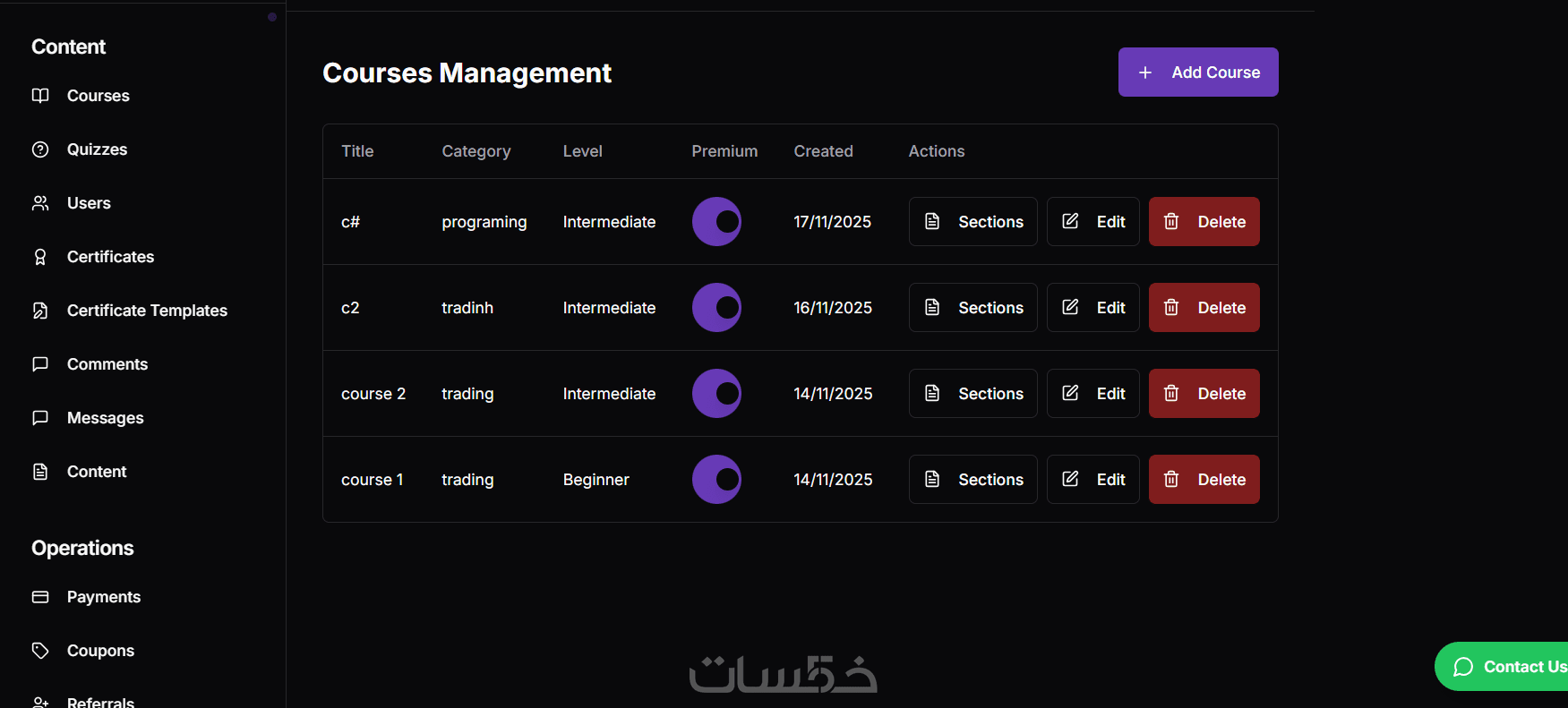 منصة احترافية لبيع الكورسات وإدارة الطلاب مع شهادات واختبارا