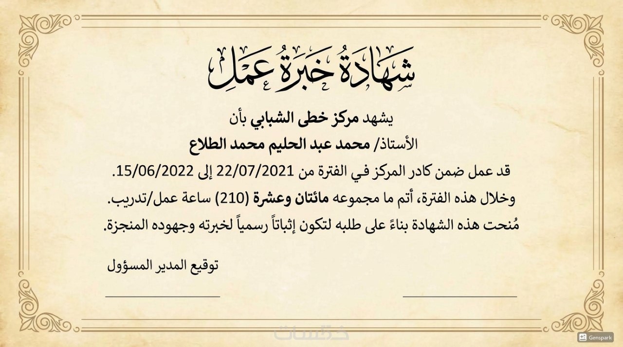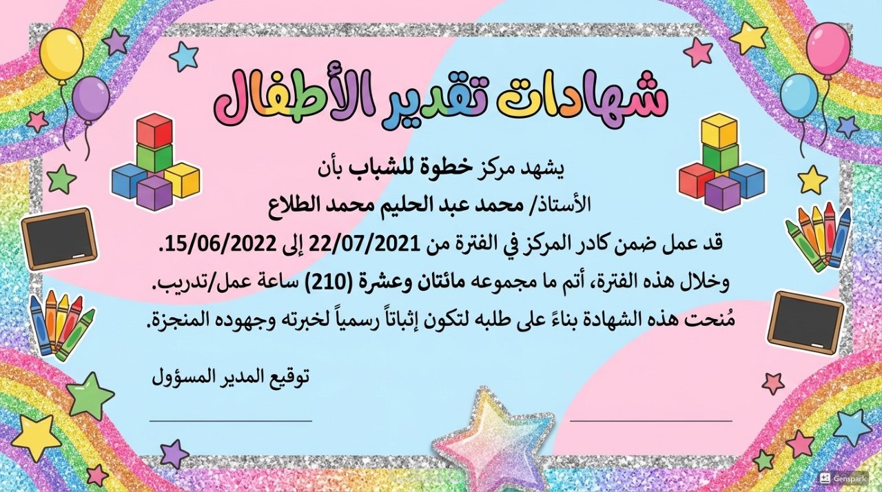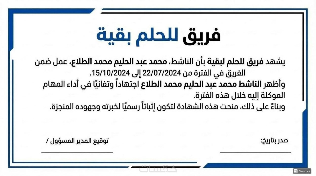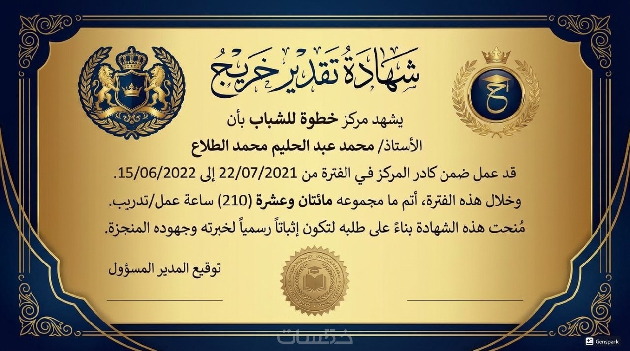 استطيع عمل شهادات تقدير احترافيه باللغة العربية و الانجليزية