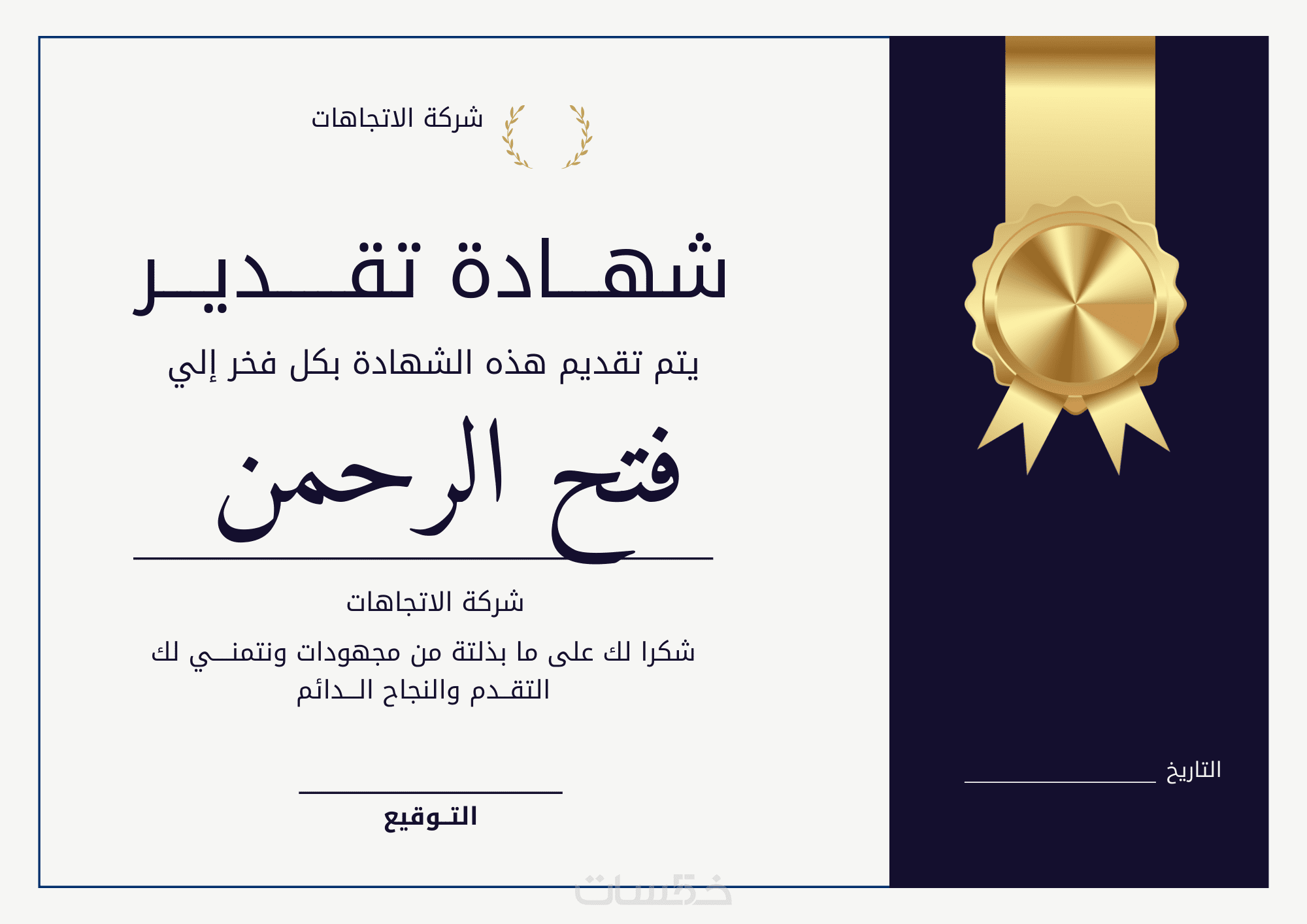 تصميم شهادة شكر وتقدير إحترافية وبجودة عالية