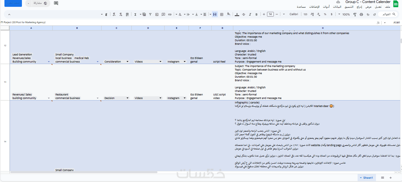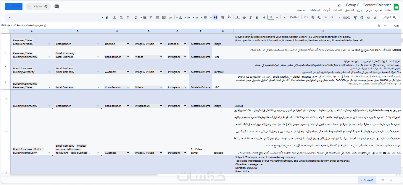 عمل خطة محتوي كامله علي منصات التواصل الاجتماعي لمده شهر