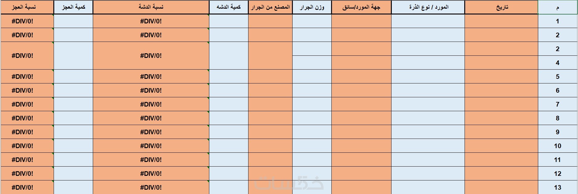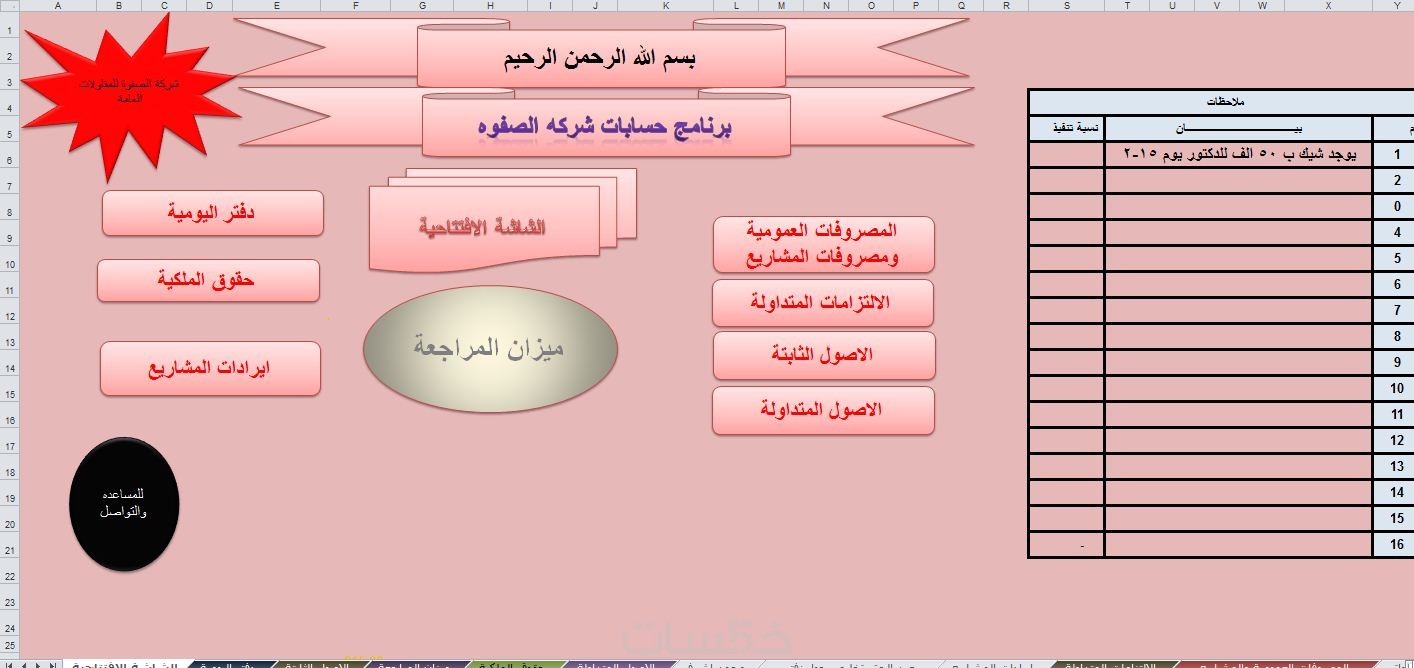 برنامج اكسل مكون من شيتات إدخال وسجلات وإحصائيات