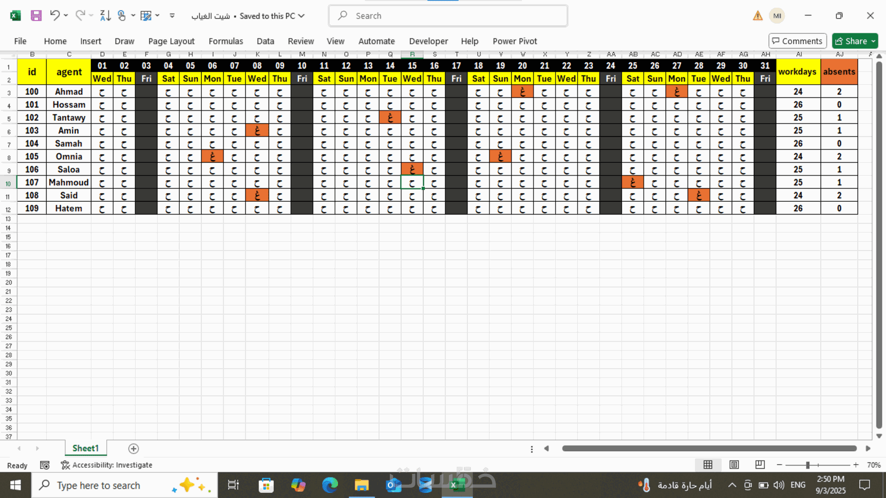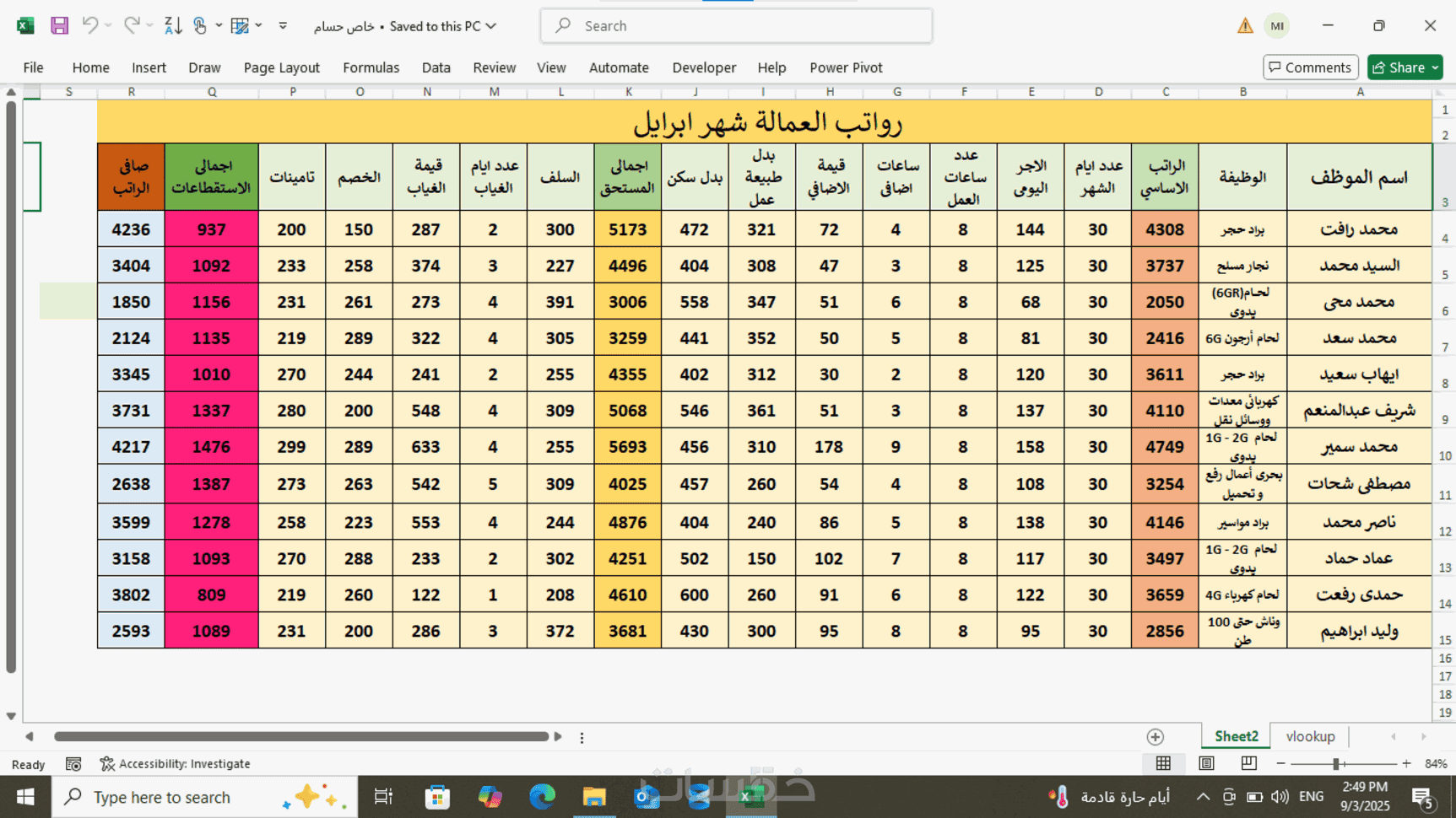 برنامج اكسل لإدارة الرواتب والمسيرات الشهرية للموظفين