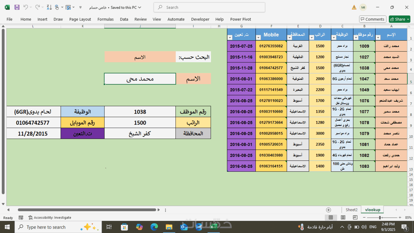 إعداد شيتات إكسل احترافية لإدارة شؤون الموظفين والمرتبات