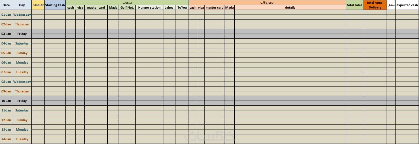 شيت احترافي لإدارة حسابات المطاعم 2025