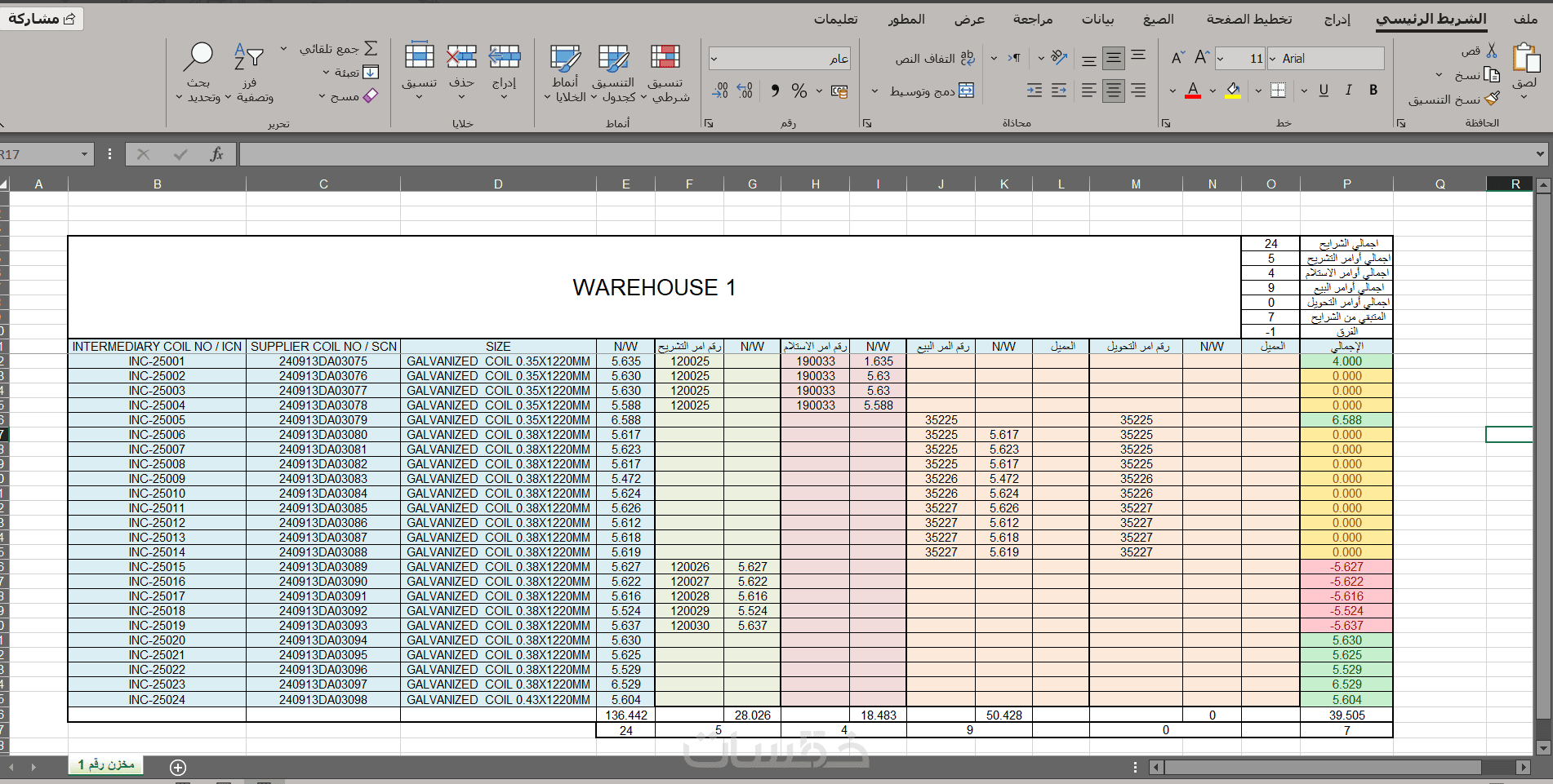 شيت اكسل ادارة المخازن و المشتريات و معدل دوران المخزون