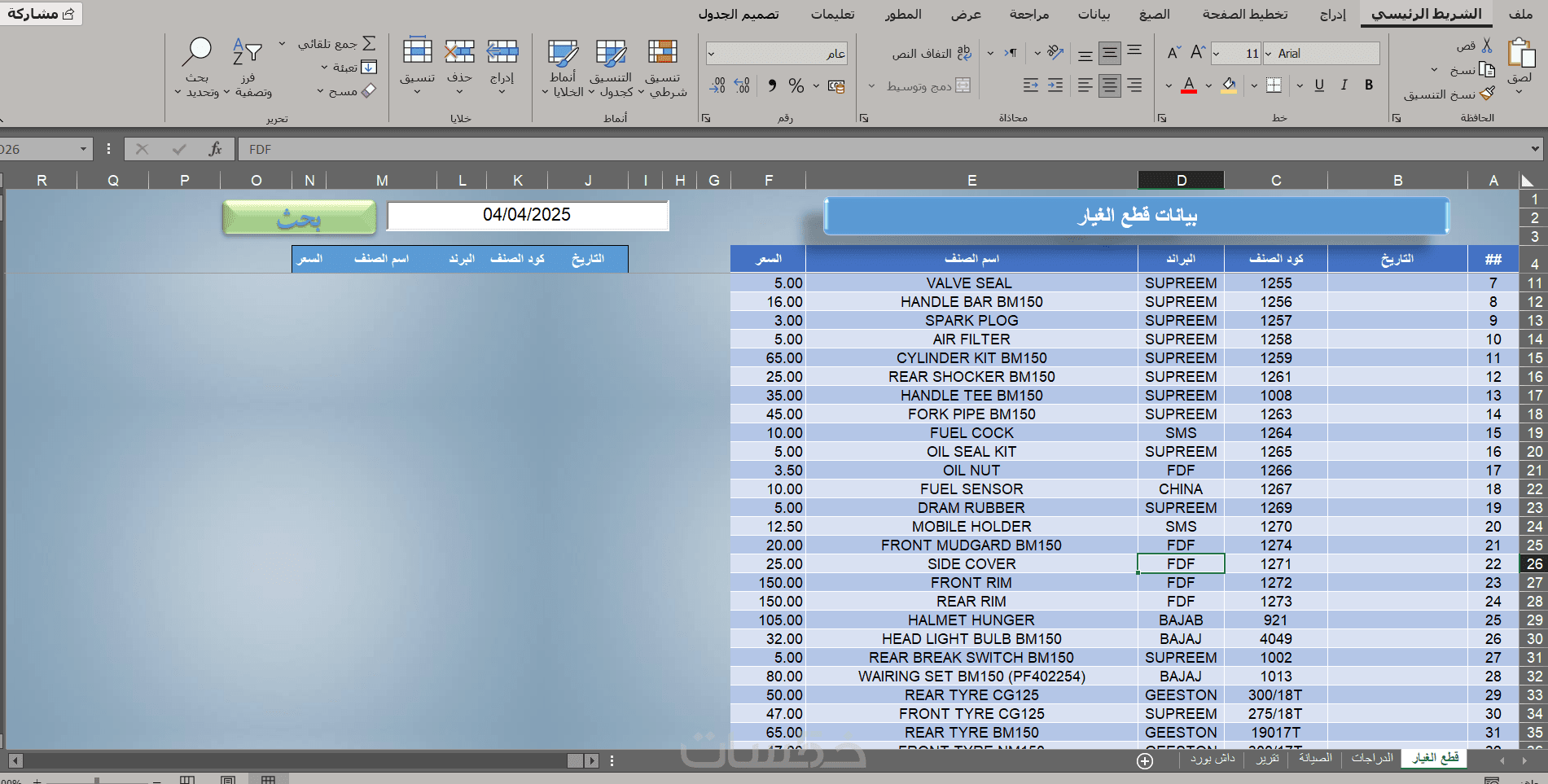تصميم شيت اكسيل ومعادلات وقواعد بيانات ع الاكسيل بلغه vba