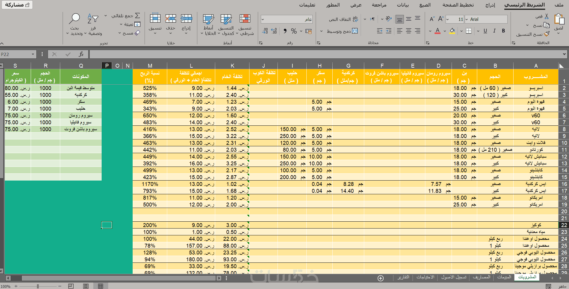 عمل شيت اكسل لحساب تكلفة منتج