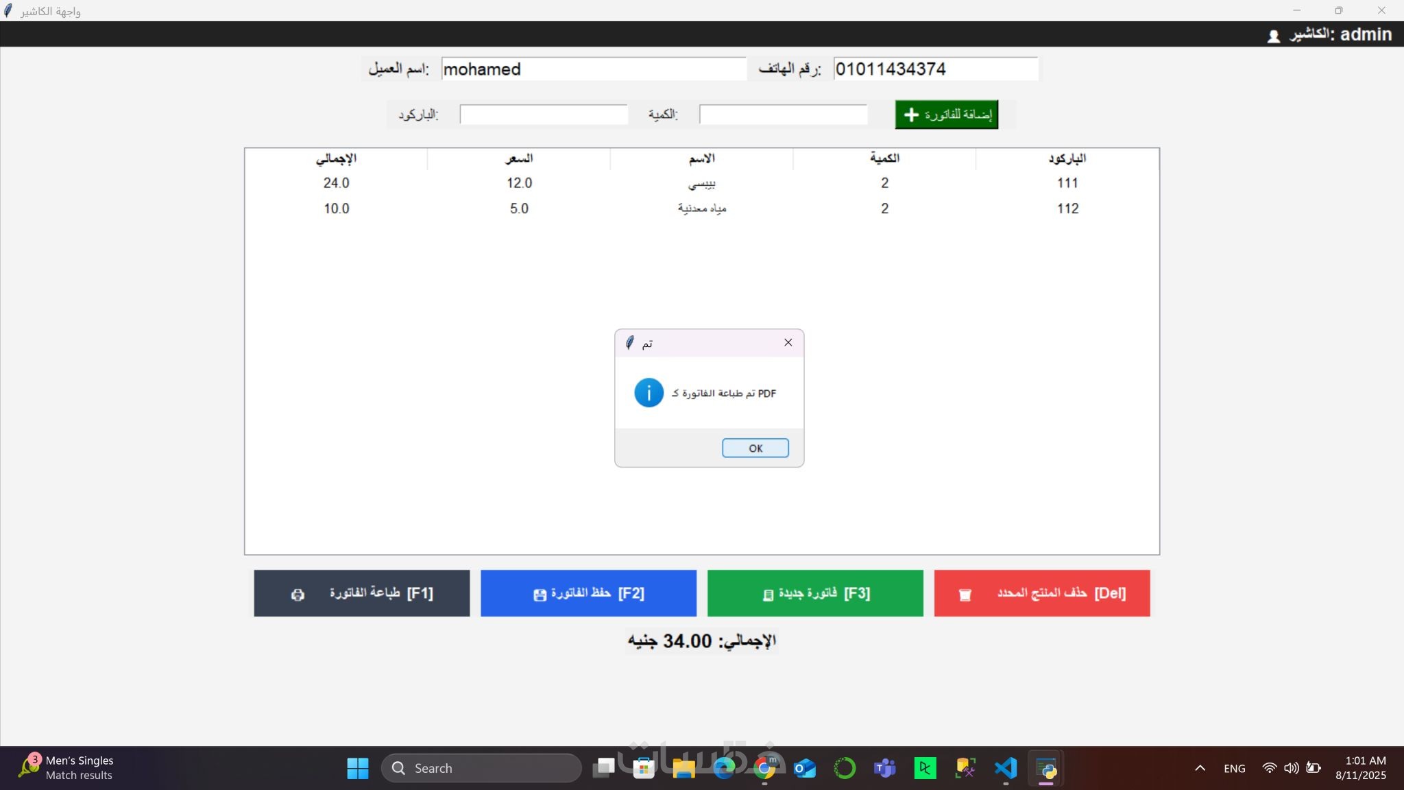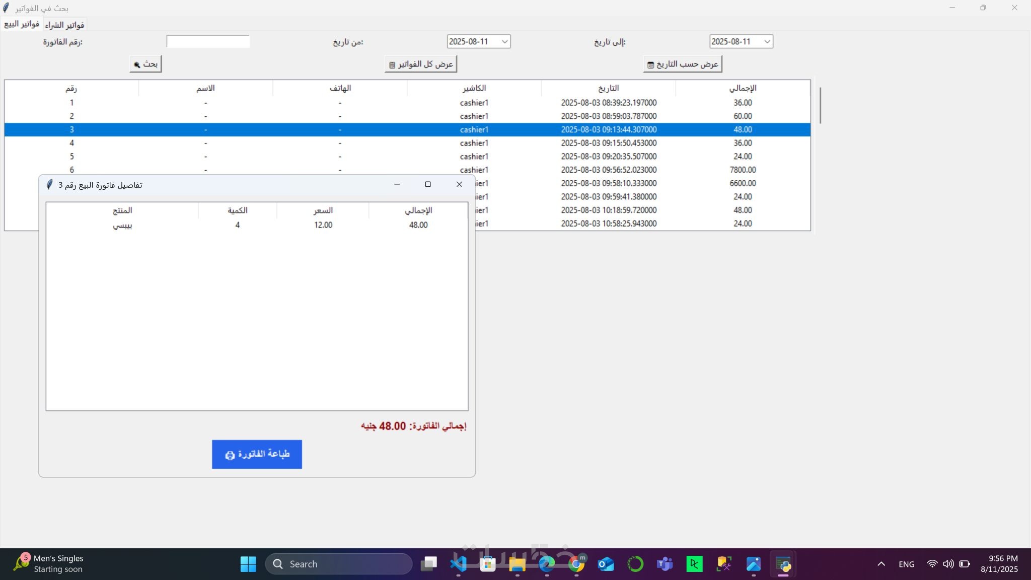 نظام بيع وكاشير متكامل للمطاعم مع دعم طباعة الفواتير