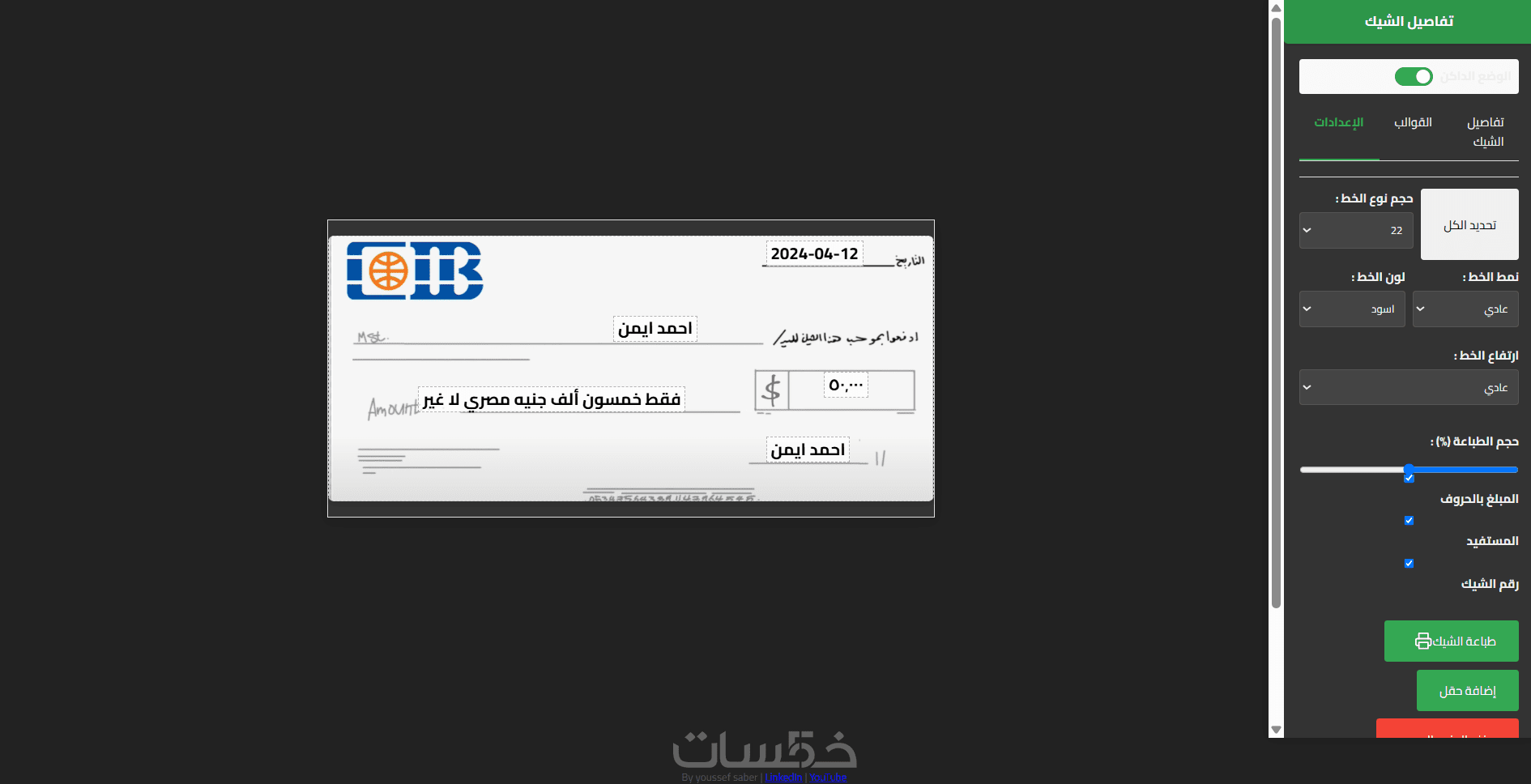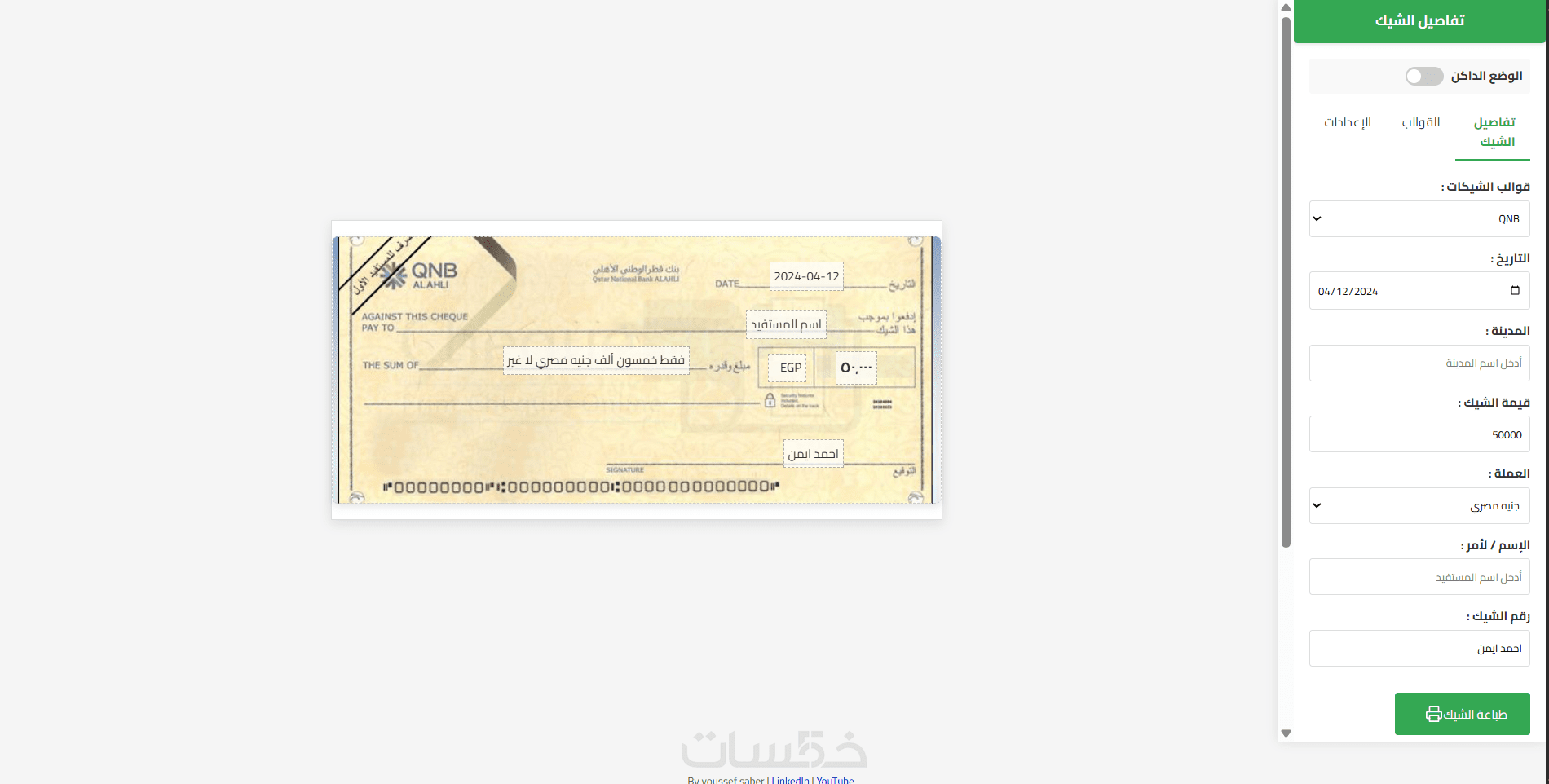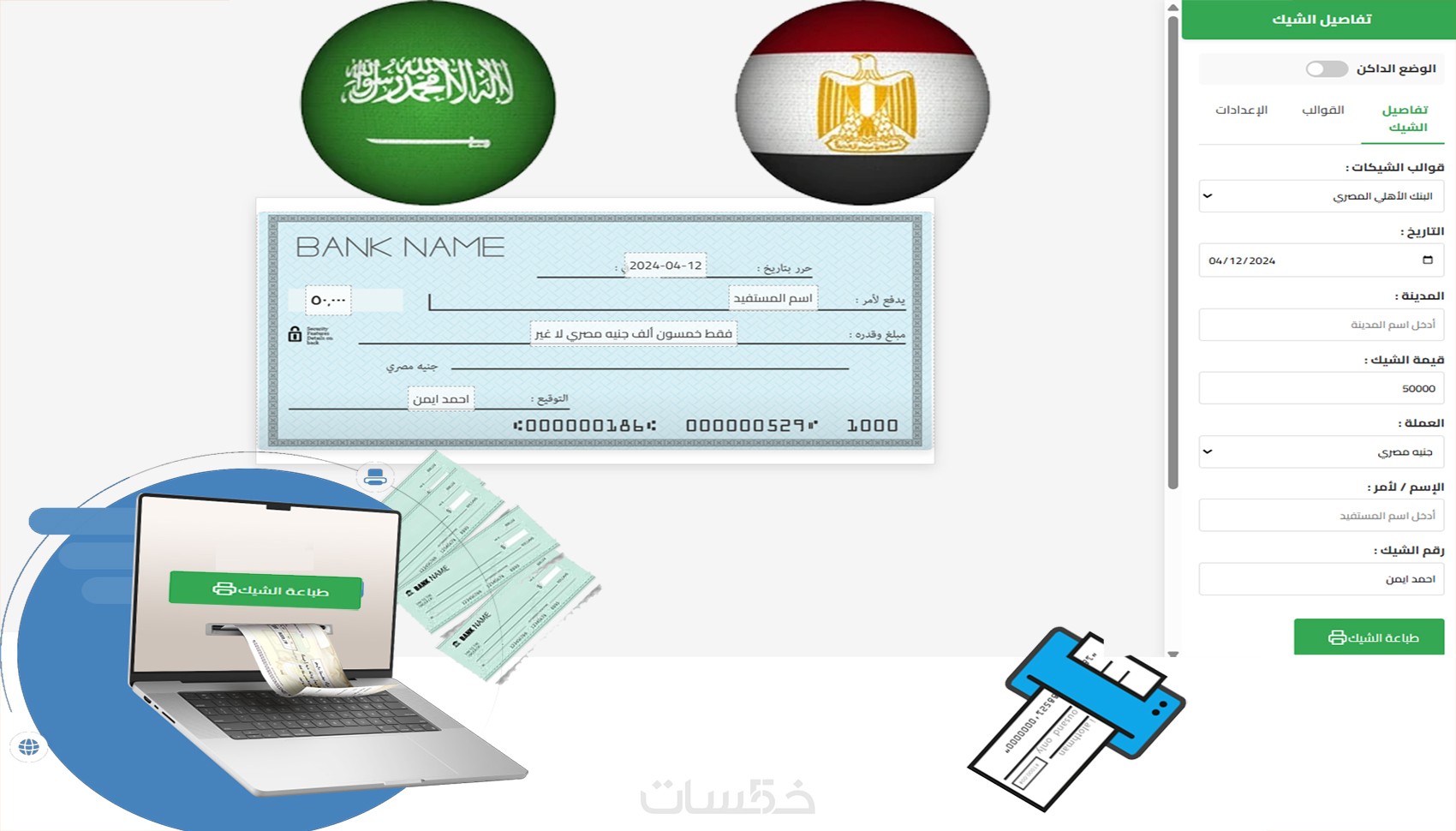 برنامج طباعة الشيكات الذكي | بدون تثبيت | أسرع أداء
