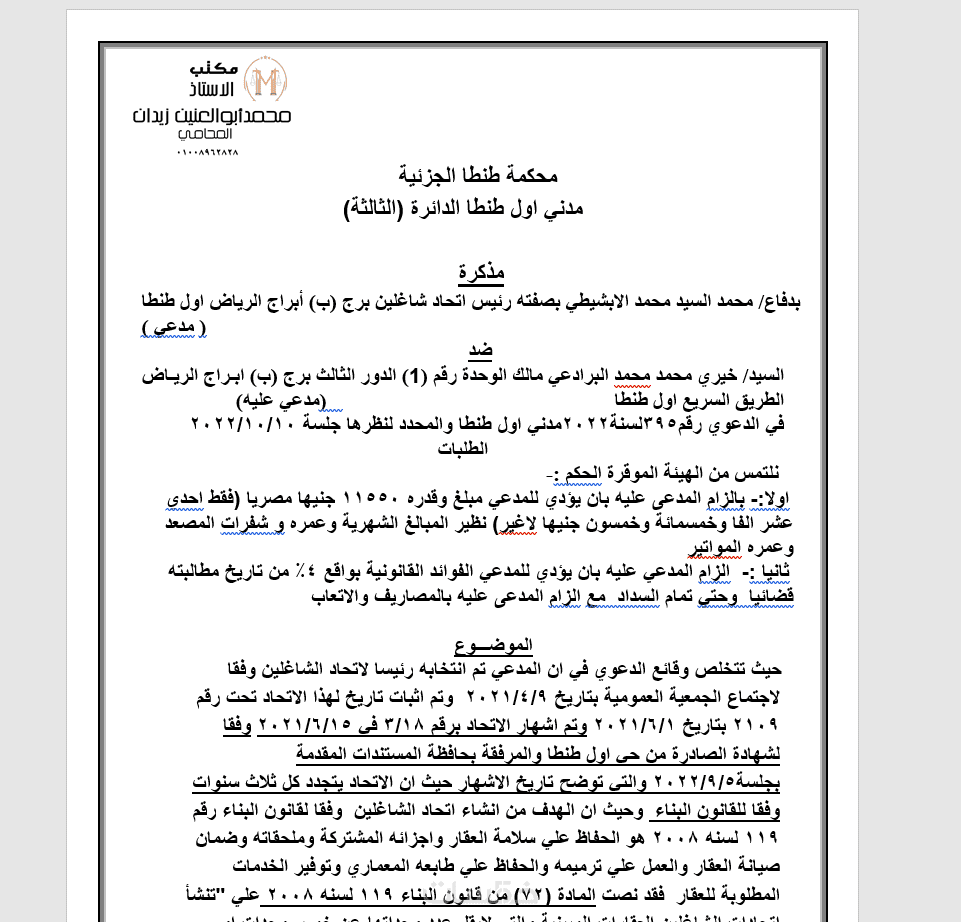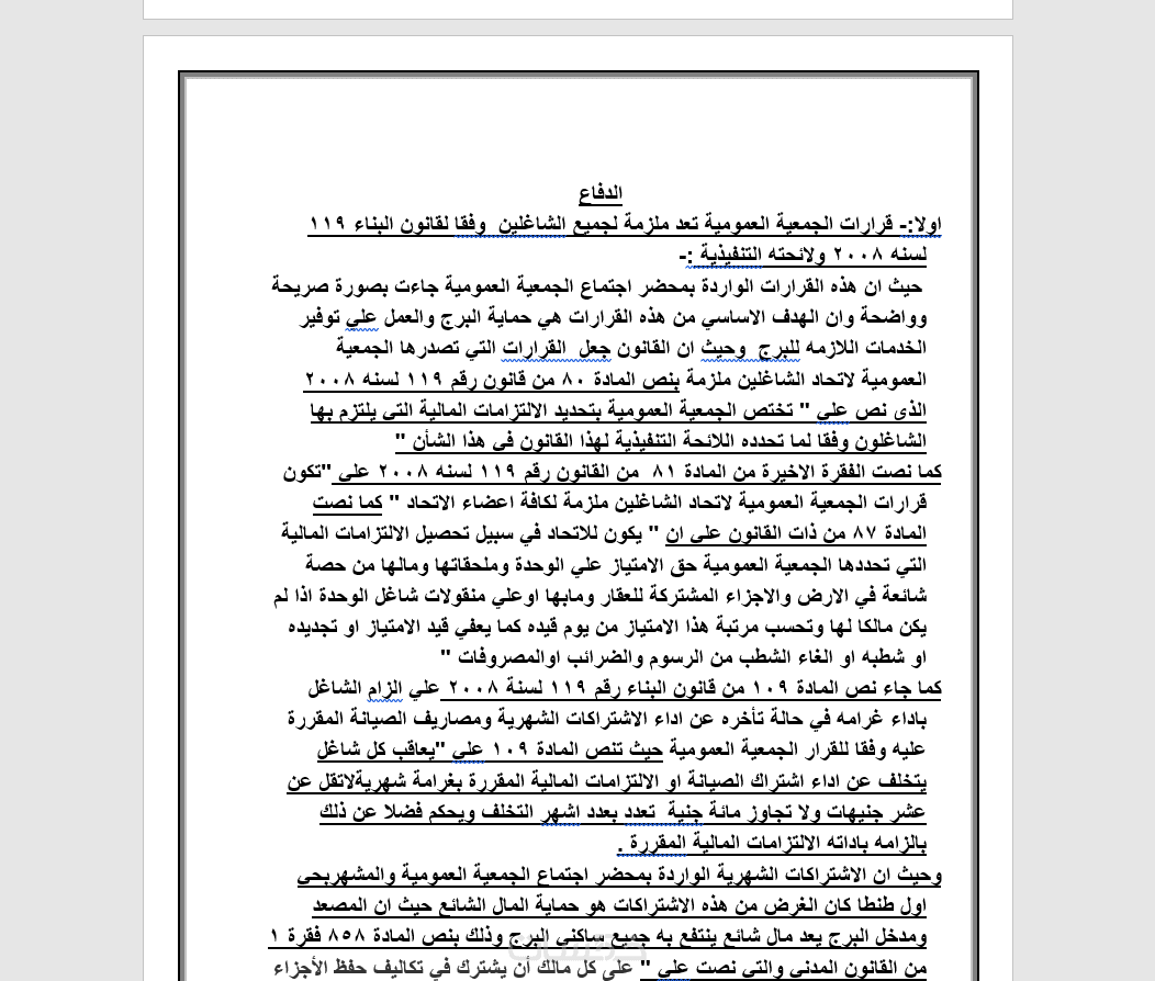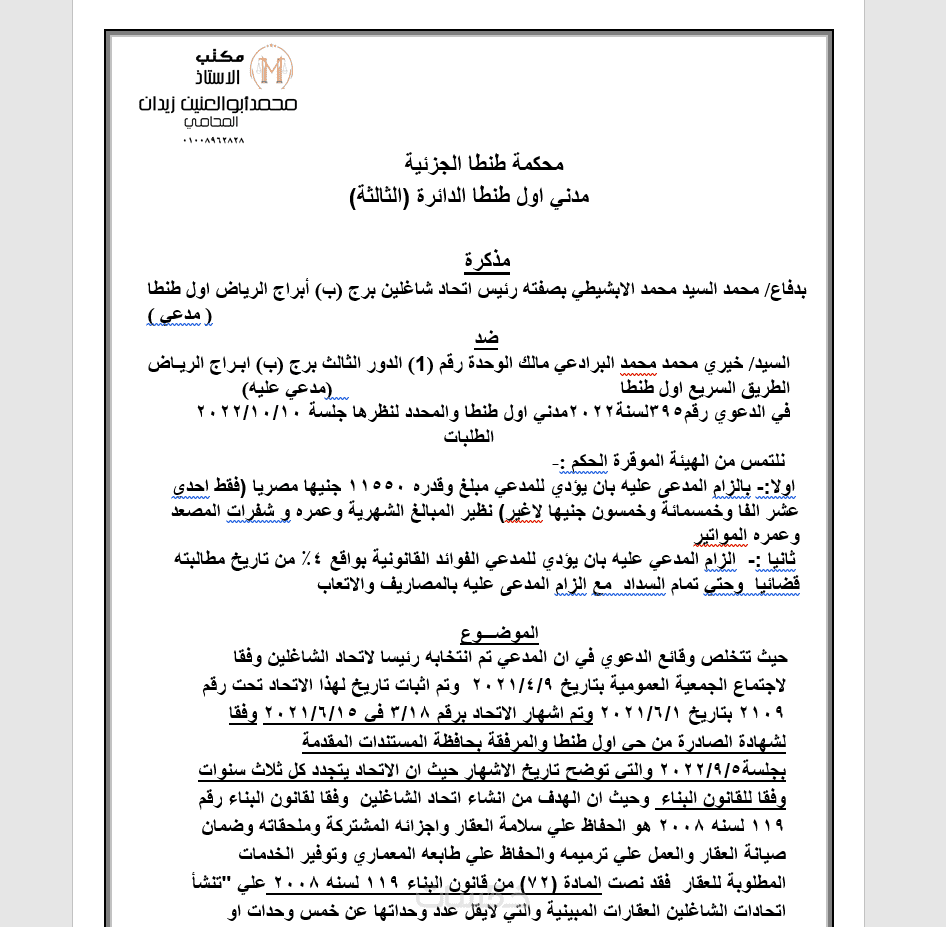 خدمة مذكرات وصحف دعاوى صياغة مذكرة دفاع أو صحيفة دعوى