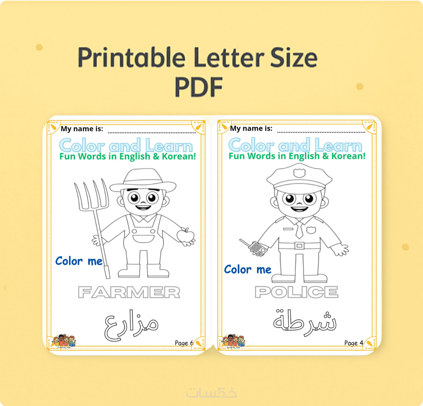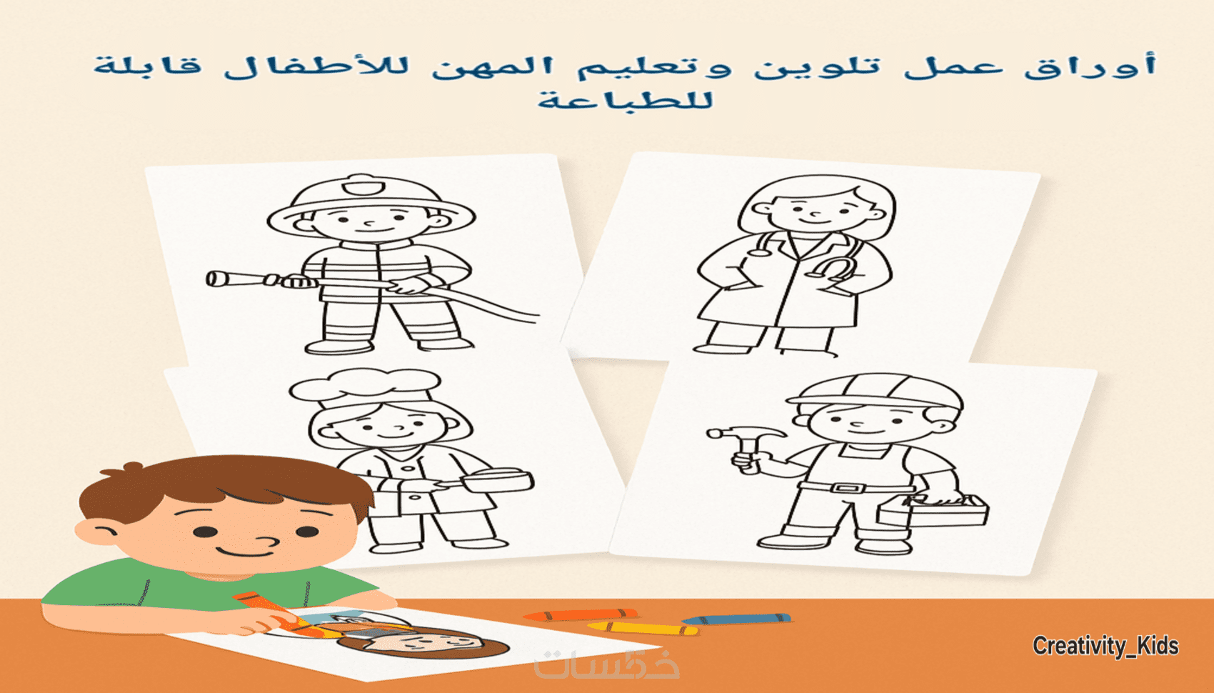 أوراق عمل تلوين وتعليم المهن للأطفال قابلة للطباعة