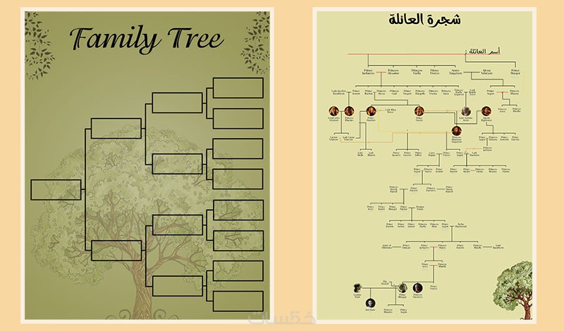 تصميم شجرة العائلة أو النسب جاهزة للطباعة بأعلى جودة