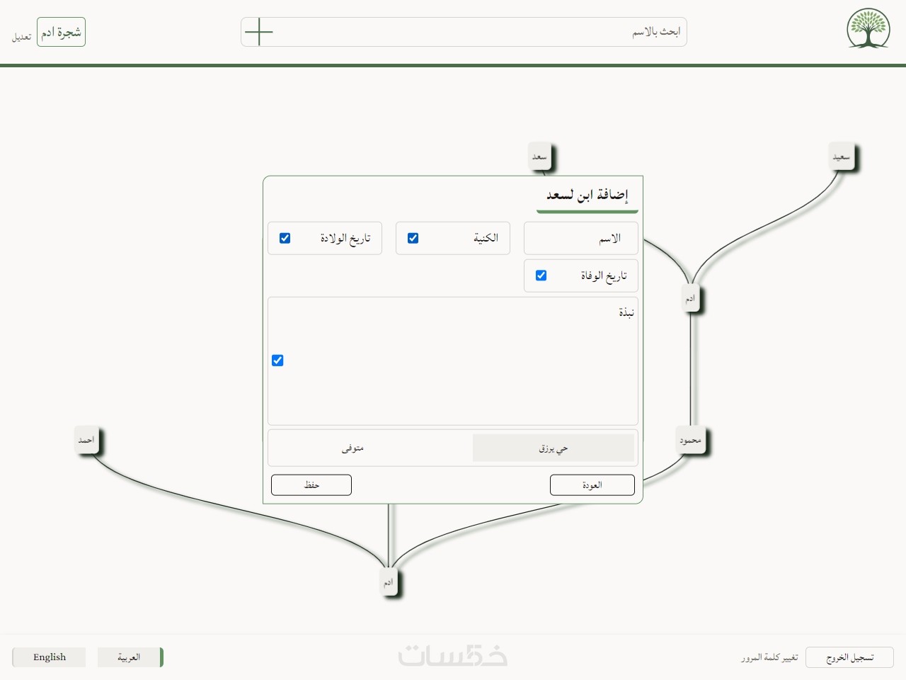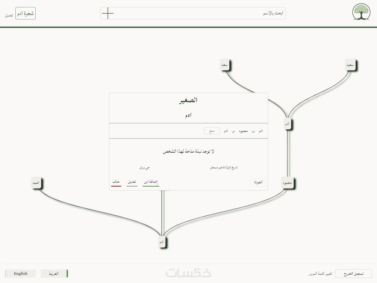 شجرة نسب لانهائية مع إمكانية إدارة الأسماء