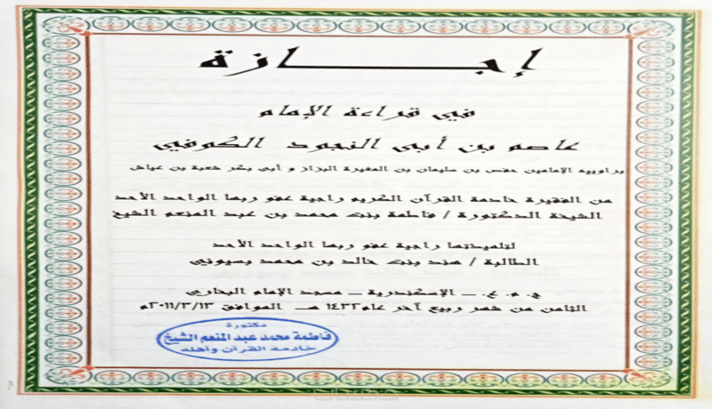 تعليم القرآن بقراءة عاصم بروايتي شعبة وحفص