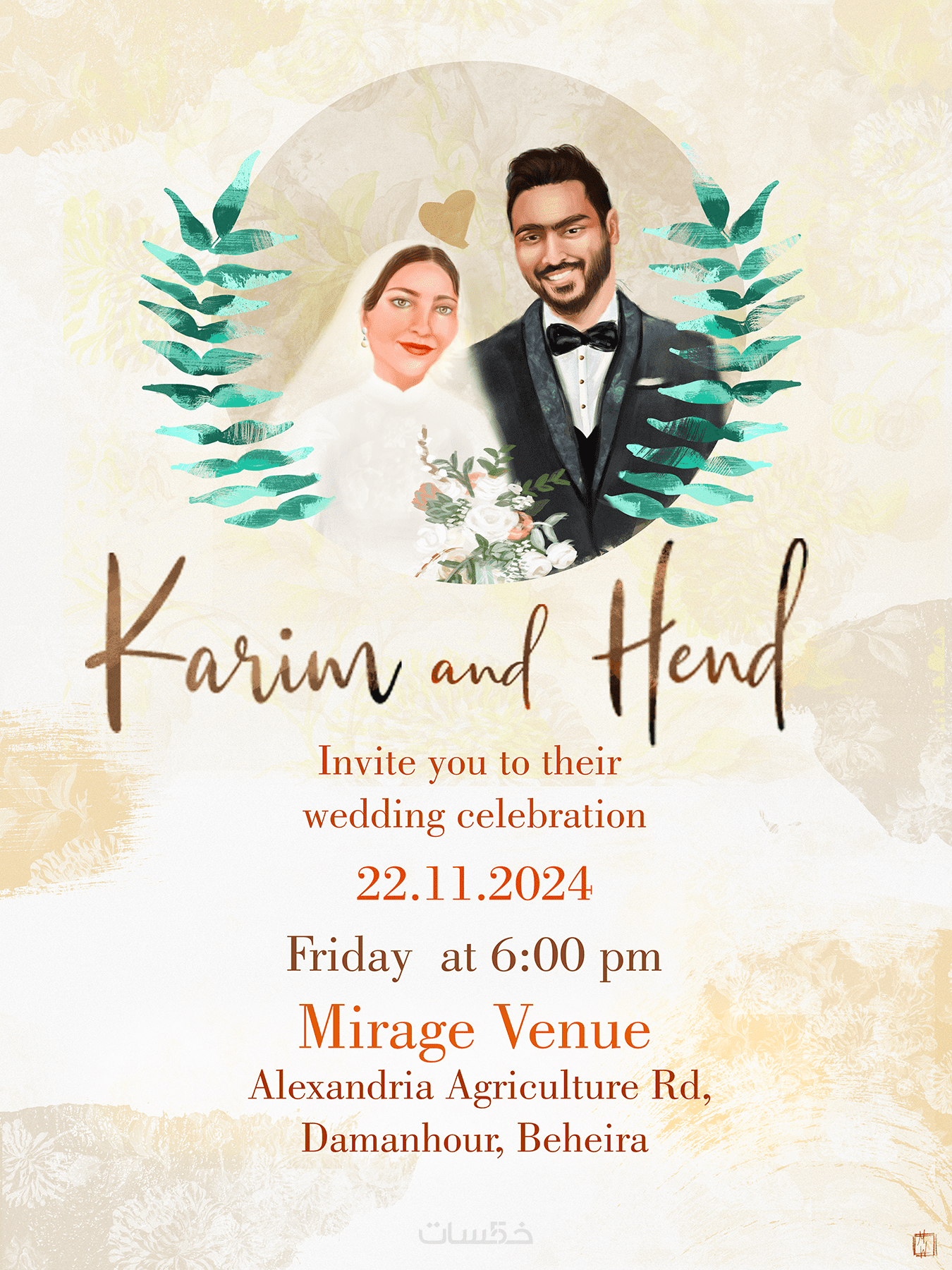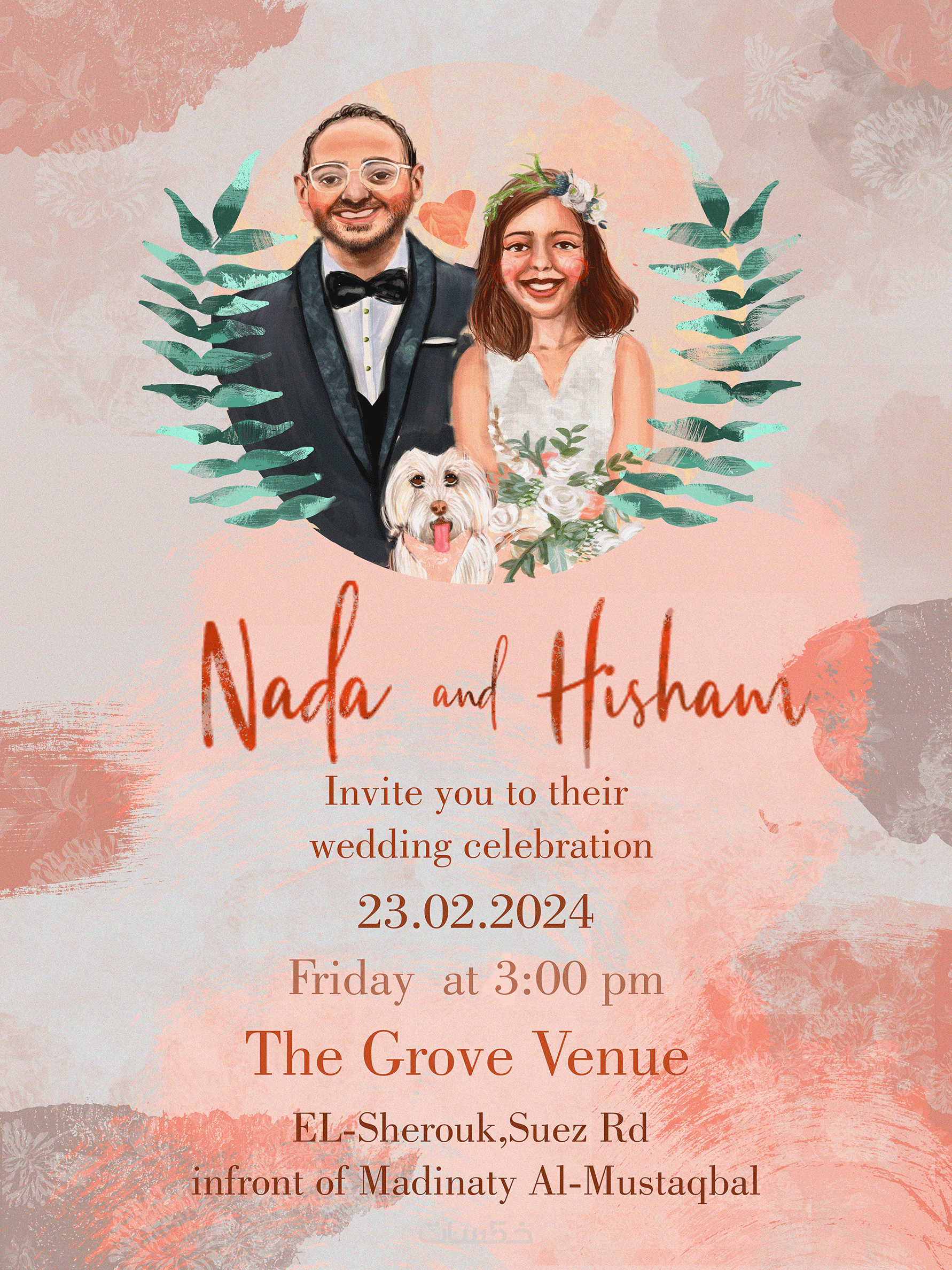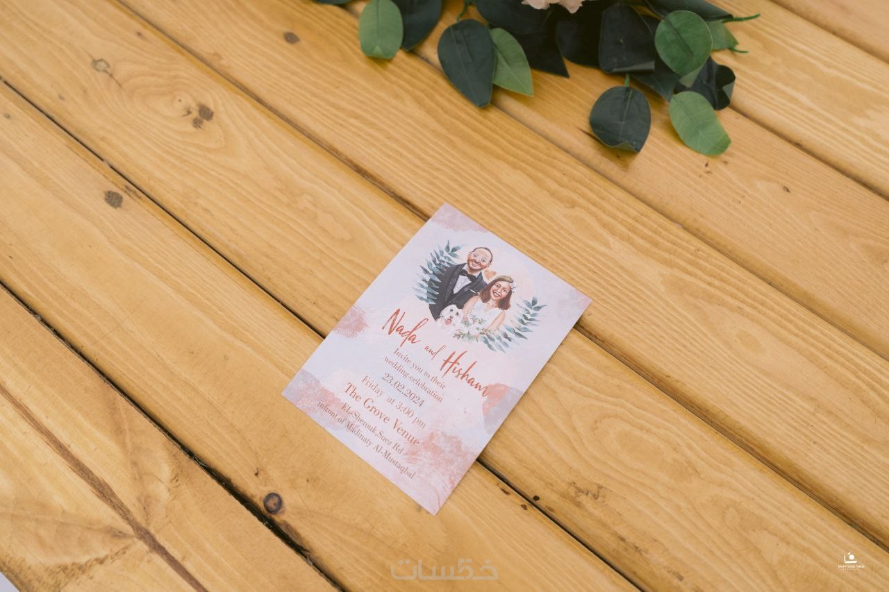 تصميم دعوة زفاف مرسومة ومخصصة بالكامل