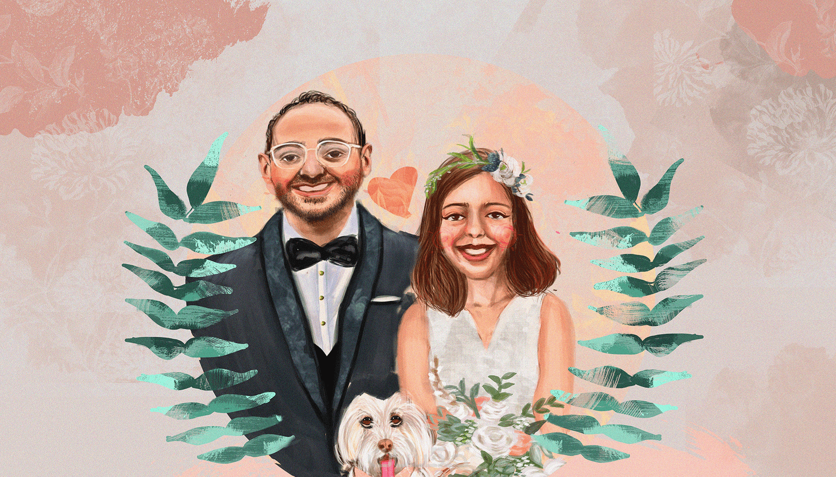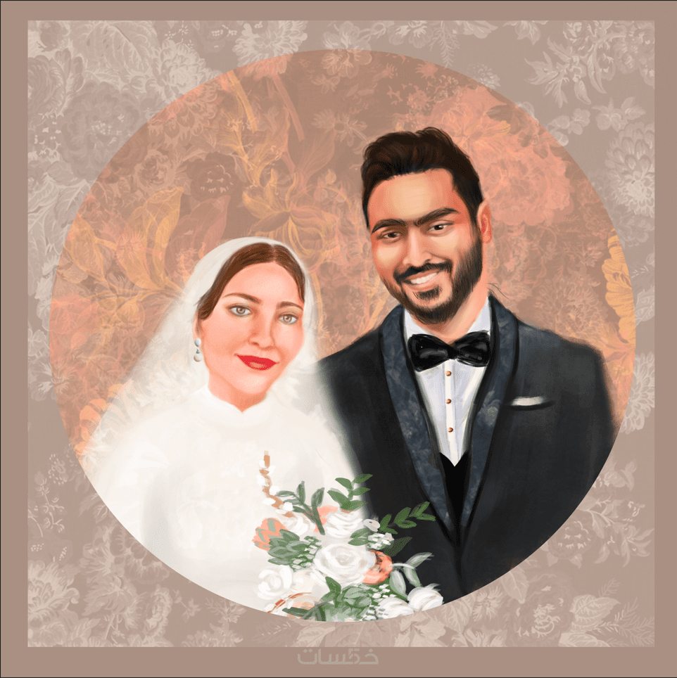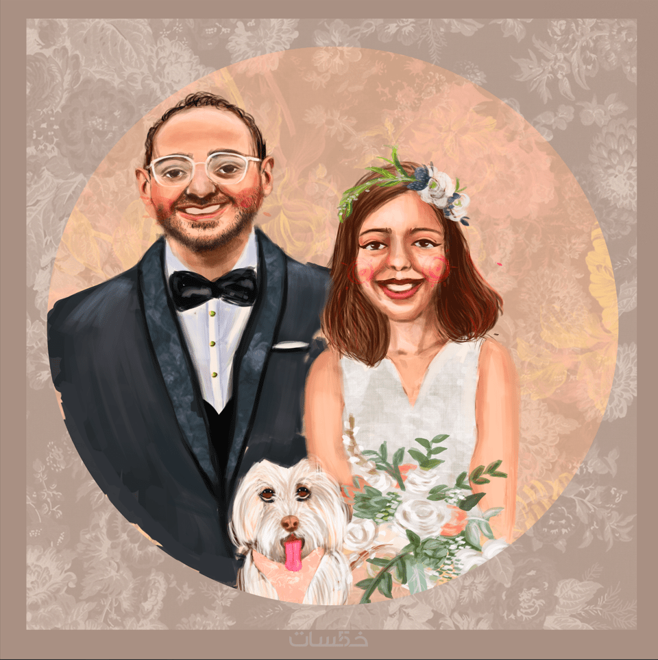 تصميم دعوة زفاف مرسومة ومخصصة بالكامل