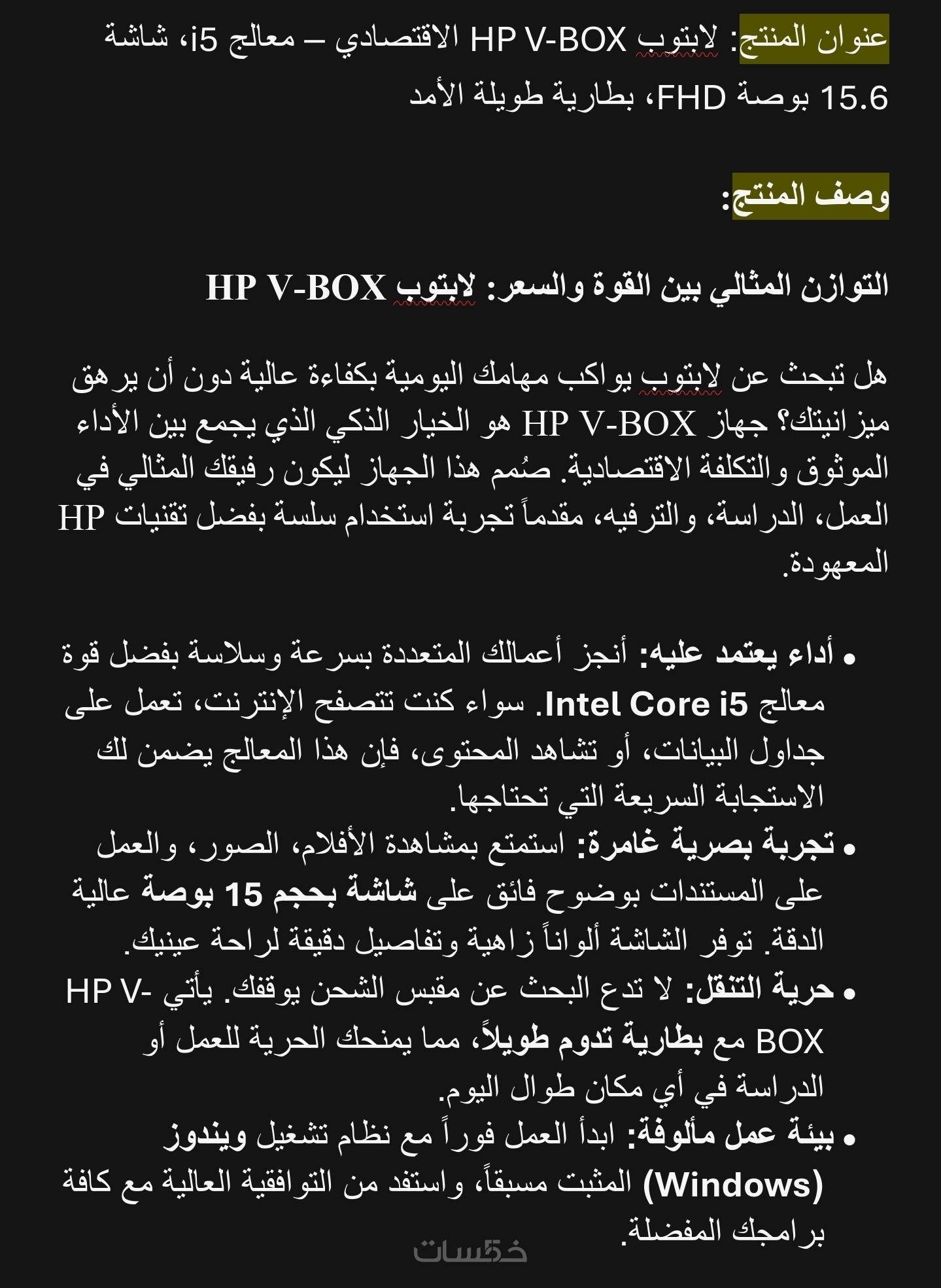 كتابة وصف ابداعي تسويقي لمنتجات المتاجر