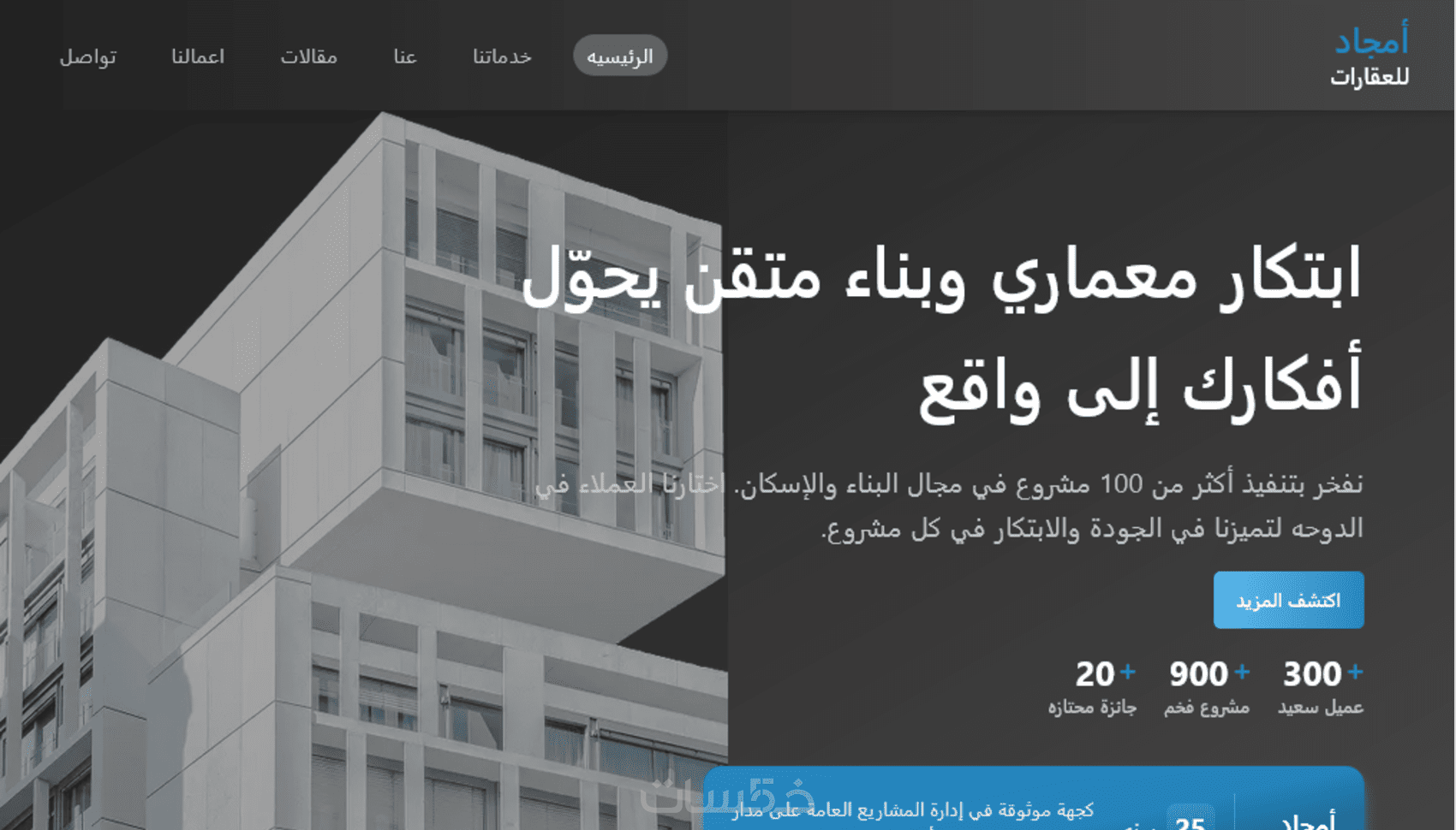 إنشاء موقع احترافي للتطوير والاستثمار العقاري