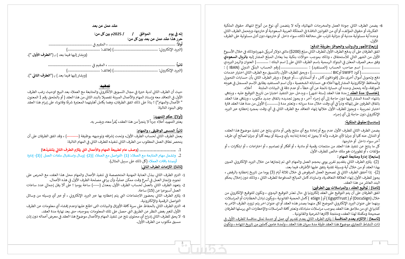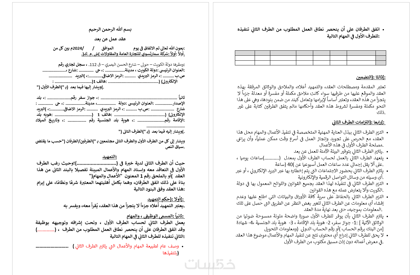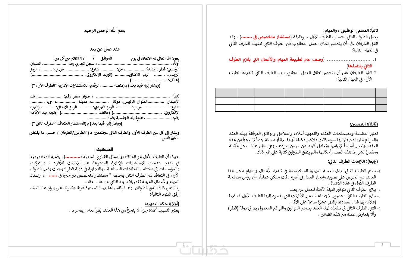 صياغة عقد عمل عن بعد Remote Work Agreement