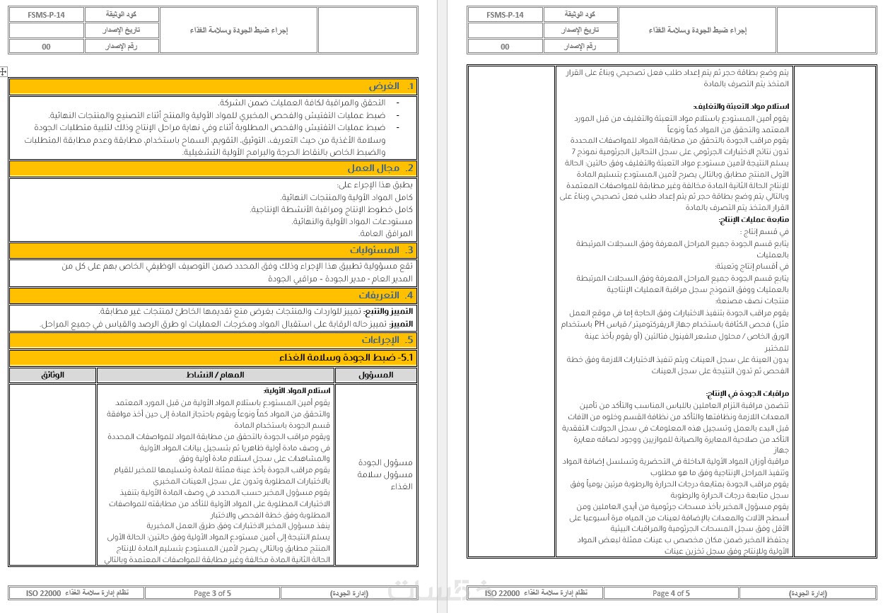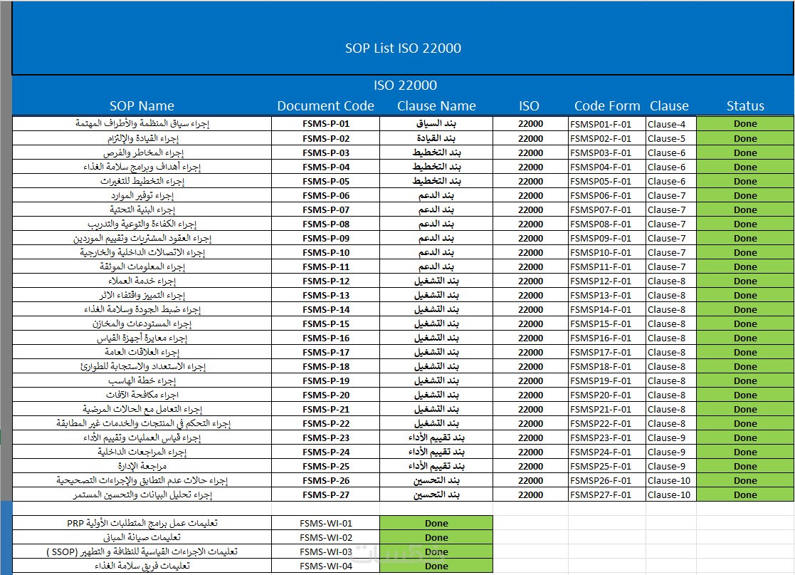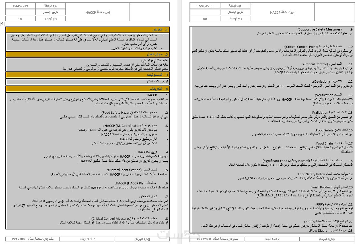 وثائق وإجراءات نظام إدارة سلامة الغذاء ISO 22000